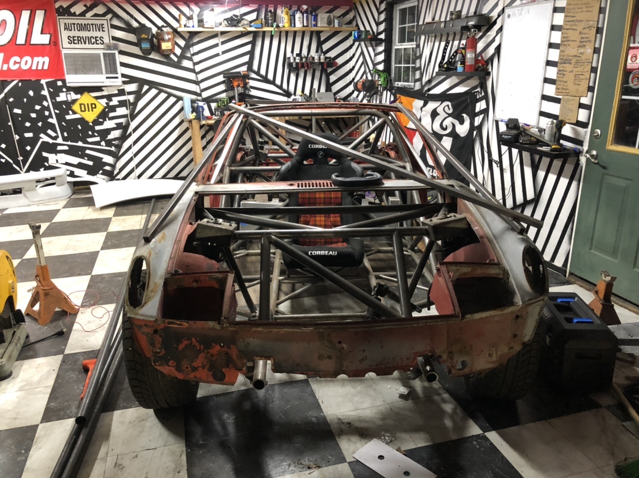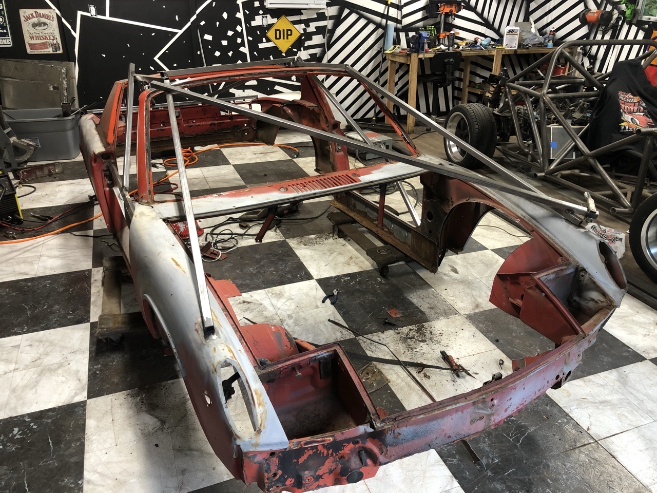 Started working on mounting the body, made a rear bumper bar. I took a piece of 1-1/4” tube and slip rolled it to about an inch of deflection so it sat fairly nice under the tail lights. Added tabs and presto! A little job but it came out good. Tomorrow should see loads of work.