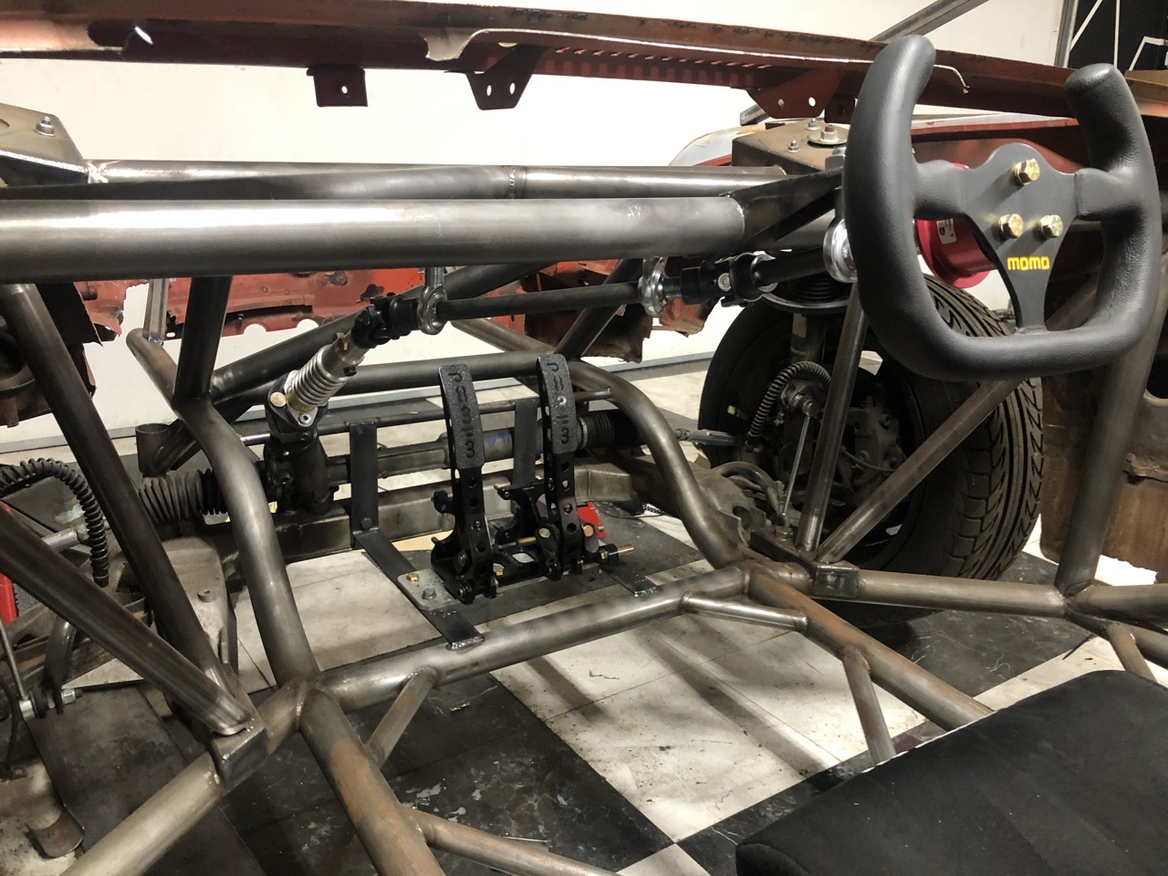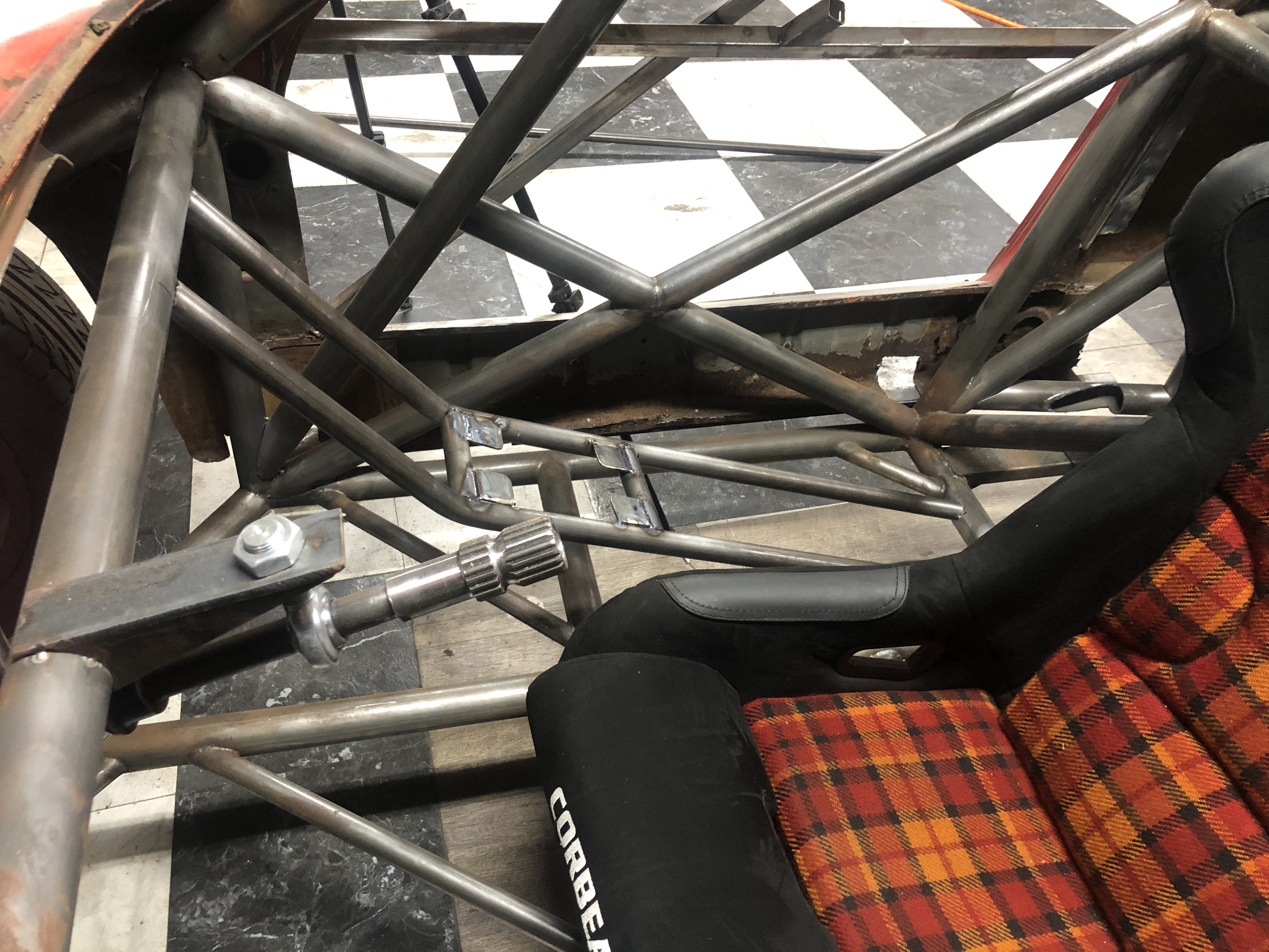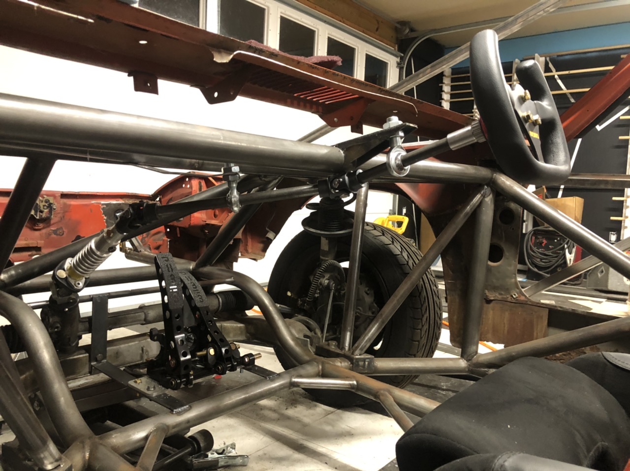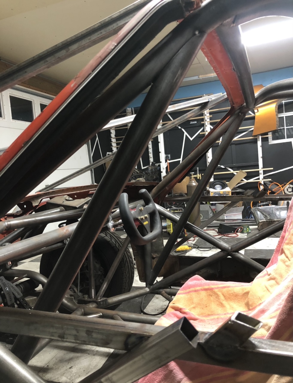 Didn’t get everything i wanted done today but i did get quite a bit! I made the roof V to protect my squishy bits from above, while still allowing me easy and quick exit from the vehicle. I also completed one of the FIA bars that extend from the footwell to the upper bend on the A pillar bar. I had my doubts about it because of driver egress concerns but its really not an issue. Once i get that done its gusset time and a little special piece? maybe we’ll see!