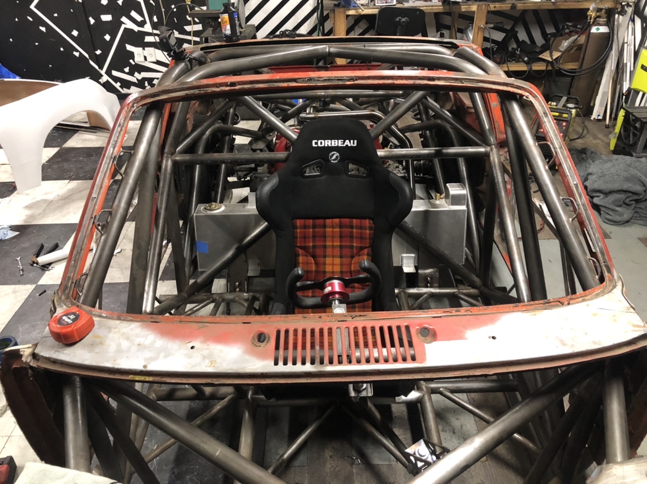 Now almost all of the structural tube is in! The only thing i have left is two removable braces that go from the roof to the rear strut towers. Im exceedingly thankful for this. my next steps are: Fuel tank mount (i think i have a plan) Firewall (most of a plan) And get it running (poor plan) Of course a lot of little things in between. |