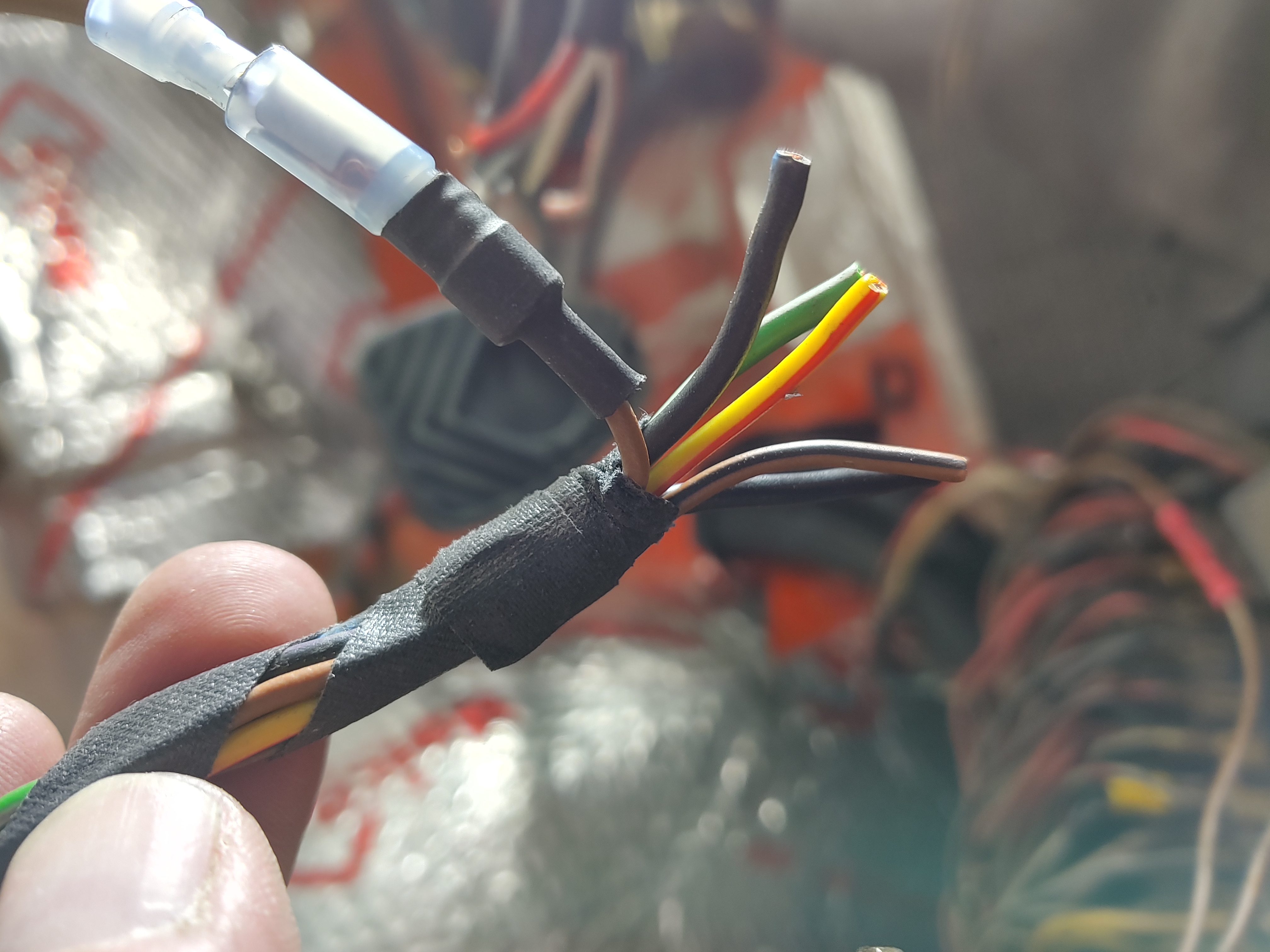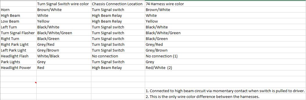Ok done and done meaning soldered ends, had a beer.. Now I have no headlights except when I pull the lever as if to pass someone.. There are no turn signals either.. I did determine I have no power to the large yellow wire on the harness.. If I jumper 12v to that I get headlights then go on..