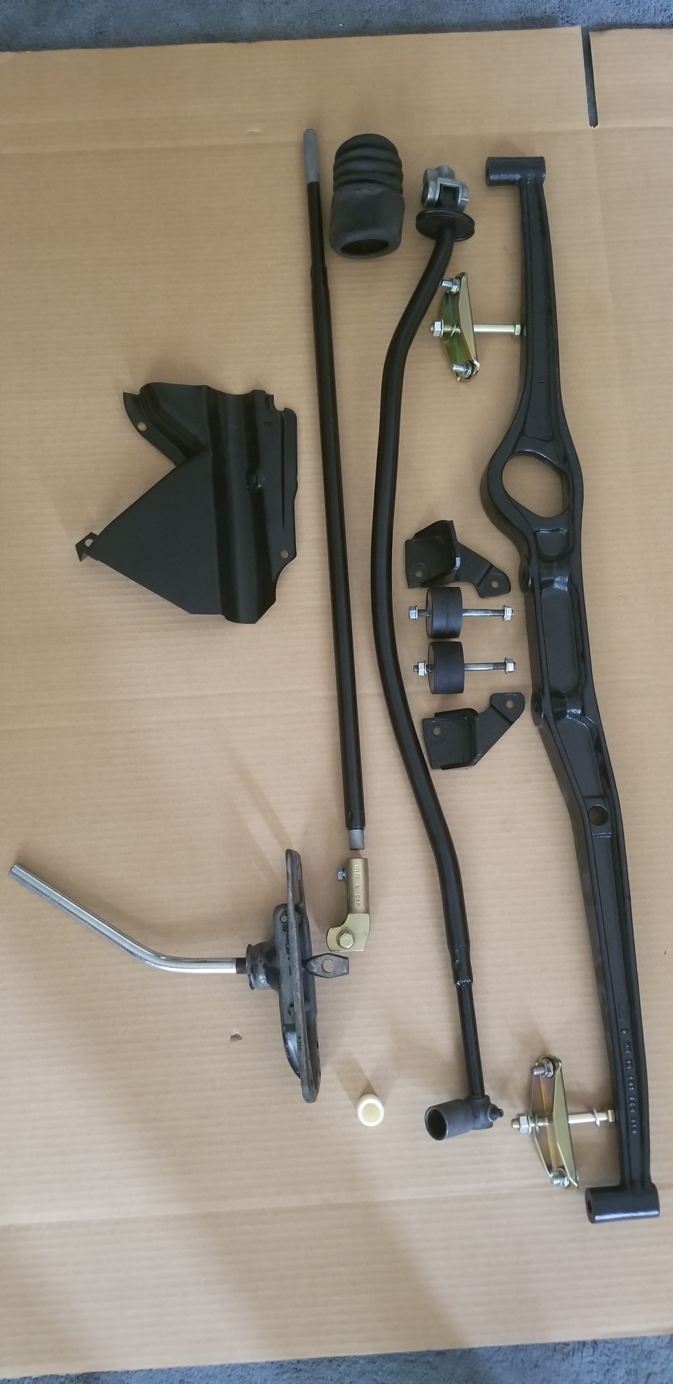 ' date='May 10 2020, 05:57 PM' post='2813792'] So I have been reading a lot of the posts about converting a tail shift to a side shift, and finally realized that the articles were about actually converting a tail shift to a side shift and getting worried (that should give you an idea of my mechanical prowess). I do have complete linkage from both a tail and side shift transmission. From what I can figure out, besides replacing the bushing all around, the only piece that I would be missing would be a conversion bushing at the firewall? Is that correct? Is there any difference between the actual shifters? Thanks for any help. [/quote] Here is a picture of the linkage parts needed to convert to a side shift. The only missing part it the firewall conversion bushing. Attached thumbnail(s) |