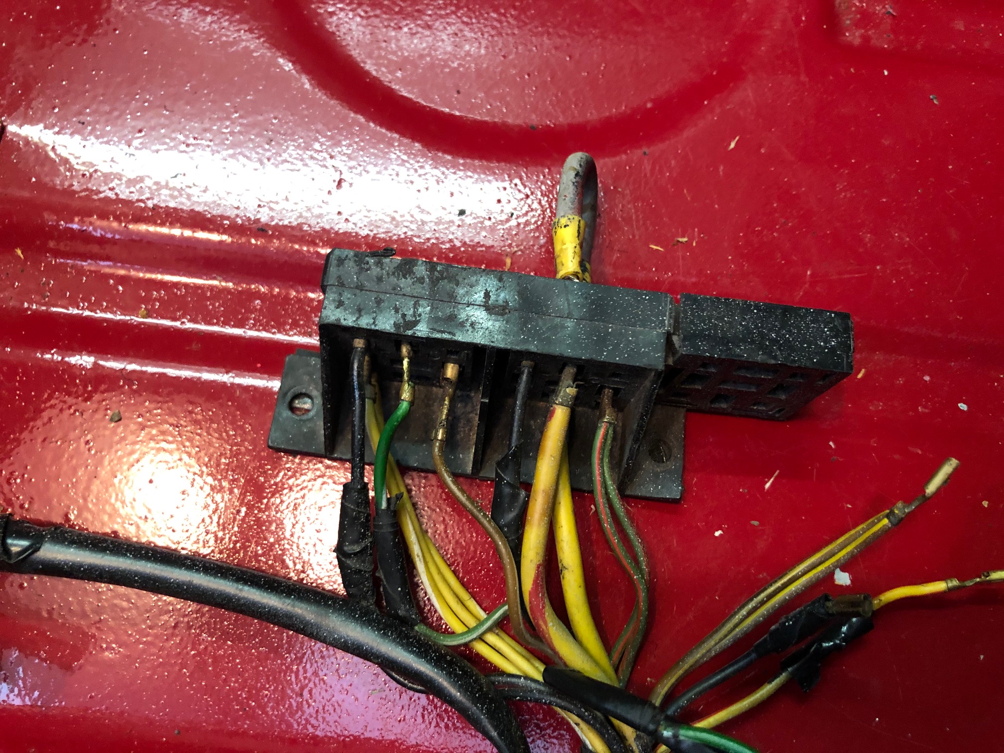 First there is a connector off to the side near the back pad that is not connected. Can anyone tell me what this is for and what will happen if I reconnect it? Second: Should the wires that are laying on the floor be connected to something? Should they be connected to any of the leads that are going to the block? Does anyone have a simple schematic that would help me connect as necessary? Leads laying on floor are: 1: Brown lead & gray lead are together and taped off separate from everything else. 2: White 3: Yellow with red stripe 4: 2 brown with yellow stripe connected together 5: Black 6: White and Green with white stripe connected together. Leads installed into block are: 1st block area 1: 2 Green with Red stripe connected together. 2: 1 fat yellow 3: 1 fat yellow with red stripe. 4: Gray with Red stripe. 2nd block area 1: Brown with white stripe 2: Green with white stripe. 3: 2 Black connected together. 4: Yellow and Yellow with white stripe connected together. 5: Yellow with white stripe. Any guidance would be greatly appreciated!!!!! 474] |