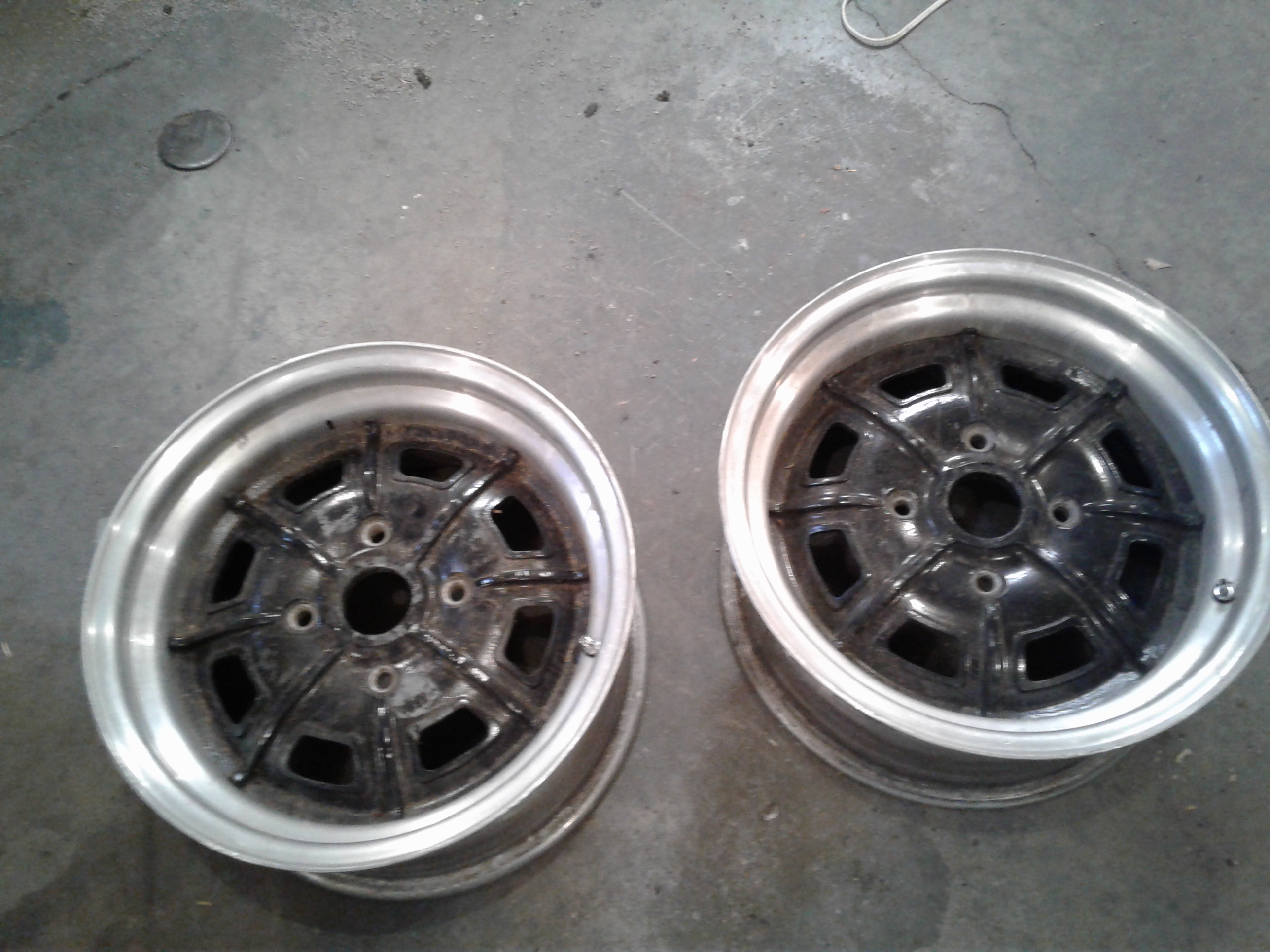 The other part of the package is a custom set of Pedrini wheels that have been widened and installed on 16" barrels. one set of 16" X 8"(2) and One set of 16" X 9" (2) ready to be refurbished. I have a set of 255X50X16's mounted on the 16 X 9's if you want to get right to installing the flares. These tires a worn out but are fine for mock up. I can't remember what I paid for the wheels but I am asking $ 850.00 for the wheels plus actual shipping. I purchased these off this form. So if someone remembers what I paid for them or can find the original ad I will sell for what I paid to pass these along to someone that will use them. If you want the package make me an offer. |