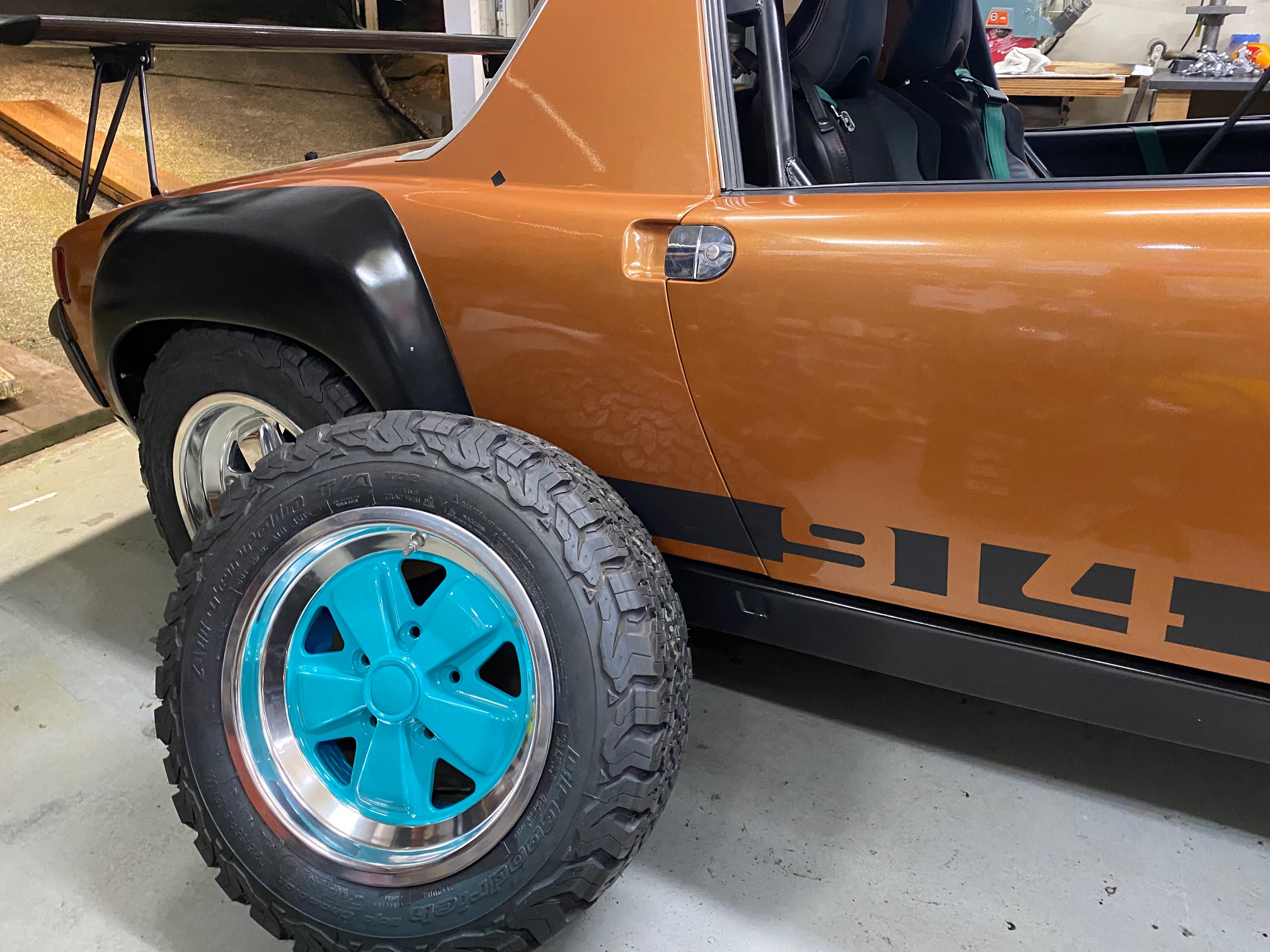 I started with a bunch of measurement, and started working on my target ride height, and planned suspension mods to ensure I can align it with basically oem adjustment methods in both configurations. It is threading the needle, and I don't think I quite made it yet, but I think I can get there with another minor change. I also might make some other changes to get simpler, easier adjustment too. This was near the very beginning of this project, as parts had started showing up. Apparently I got bored during COVID. These photos for initial measurement/clearances/planning are shown at full droop for the road configuration, but with the offroad wheels and tires. A lot (of very minor stuff) changed to get the alignment correct and much more droop travel over the course of a few months. |