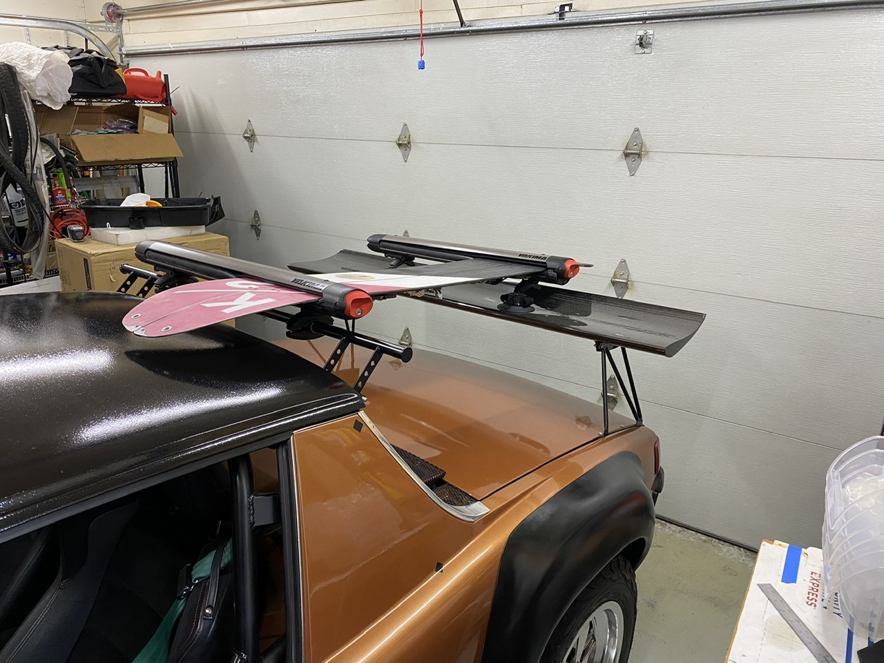 I also needed to raise the shock mounting points a bit, and also decided to soften my spring rates up slightly. I lowered the rear rates to 125 lbf/in from 140, and also went back to stock front torsion bars. I set the front sway bar to full soft for now, disconnected the rear miata sway bar, and added perches for limit straps to connect to the sway bar tabs if I choose to.