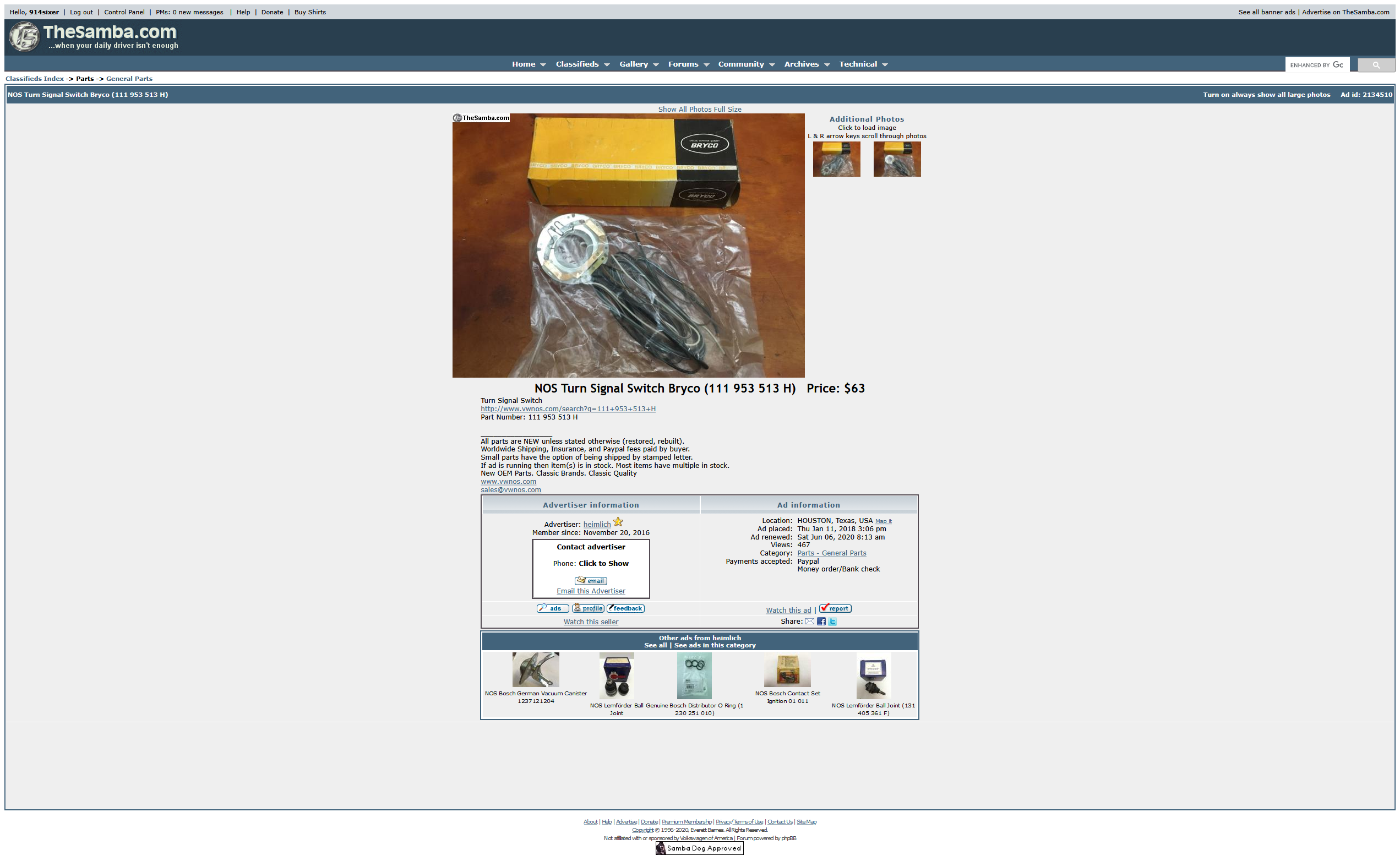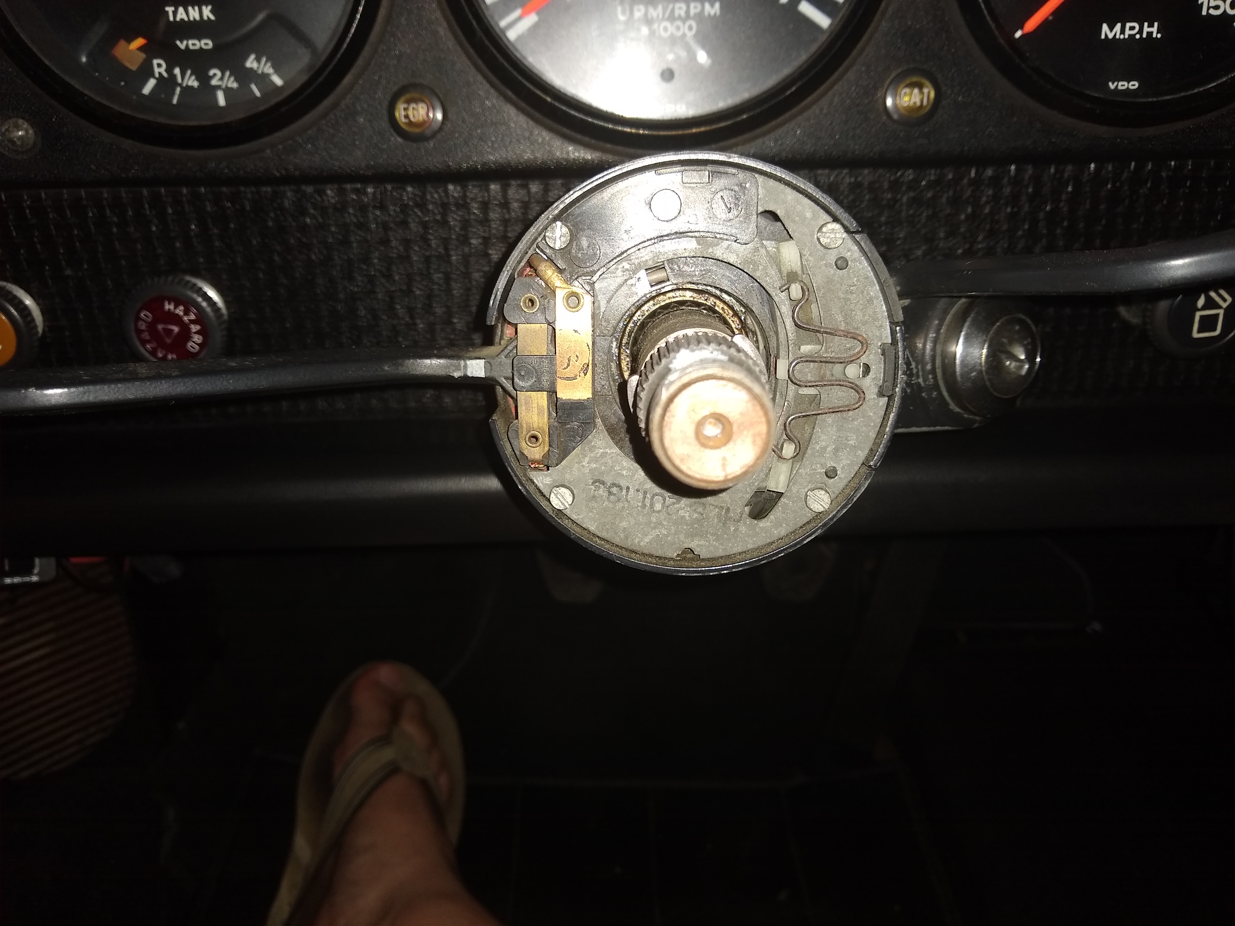 Hi All, I have a 1970 914 with an aftermarket Dino steering wheel. I've had issues with the turn signal cancel and the horn not working since I purchased the car. When I removed the steering wheel and adapter to investigate, it seems like the cancel tab is not long enough to fully initiate the cancel mechanism in the turn signal. It feels like it just touches it half way but still leaves the turn signal on. Is this a result of the tab on the cancel ring being worn out? Or is it the steering wheel adapter fitment preventing the tab to go as far as it needs to? Additionally, my horn doesn't work. I attached a picture below. It looks like the brass colored arm has been removed or sheered of. Will that affect the performance of the canceling tab? Thank you for the help in advance. The broken contact is the reason you have no horn as you have no contact on the slip ring,this is usually cause but no lube,the tab wears and breaks off. Not sure about the Dino wheels but suspect they are same fitment as the Momo version,what adaptor do you have ? and do you have the stock slip ring attached on the back of the adaptor or something else ?. Seems like your wheel may not be on far enough for the cancel function to work or switch is broken,however you still need to replace it . I found for example the Momo adaptor wasn't a great fit so the stock wheel components didn't fit well without some work to get the cancel piece in the right place. Good luck. |