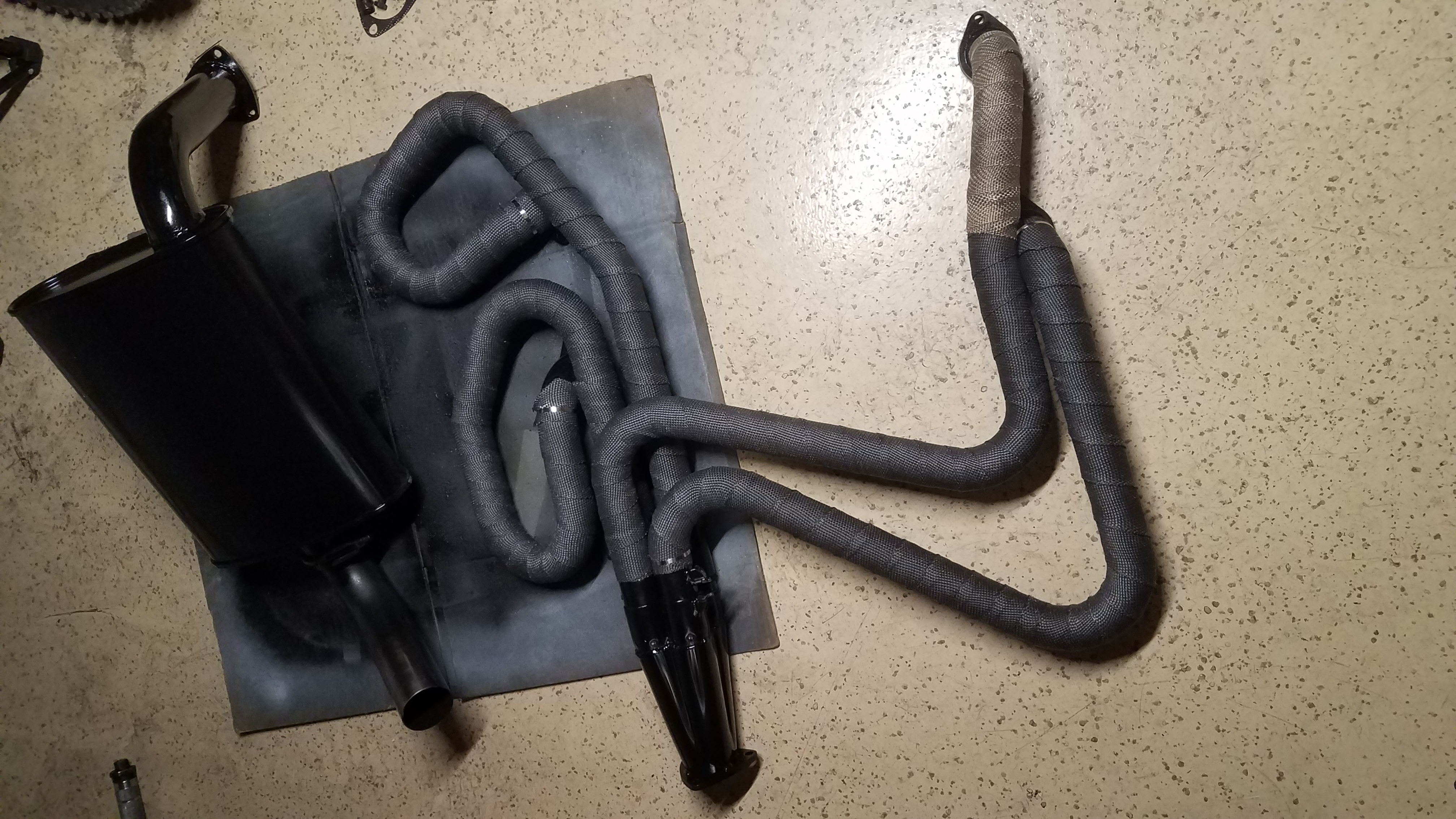 Why did you wrap it? That wrap holds oil and grease that inevitably drops on the exhaust. You don't have other parts you are protecting, the wrap is just extra weight and a smokey mess. If you want to keep heat in the pipes - ceramic coat the pipes. I did that with my Eurorace header and it really worked! Zach The exhaust was wrapped when I bought the car but it was a horrible job. It was loose in spots and wrinkled in others so I took it off. The bare pipes didn't look any better. I wanted do something to make it look half-way presentable so I painted it with black high temp engine paint and wrapped it. I know the "high temp" paint may not stand up to the extreme heat of the exhaust but it can't look any worse than it was before. I have replaced all the engine and transmission seals and gaskets before I put the transmission back in the car. The RMS is not leaking so i am leaving that alone. I will replace the strainer seals once I have the transmission back in the car. With all new seals and gaskets I expect it will be at least 64.8 to 65 miles before any oil or grease starts leaking and getting on the wrap. (IMG:style_emoticons/default/driving.gif) This is really just a middle of the road cosmetic solution. I didn't see the need to spend the $$ to have it coated (It is just a basic driver, not a race car) and I didn't want to leave it looking like crap so this was the quick, easy, and inexpensive solution. |