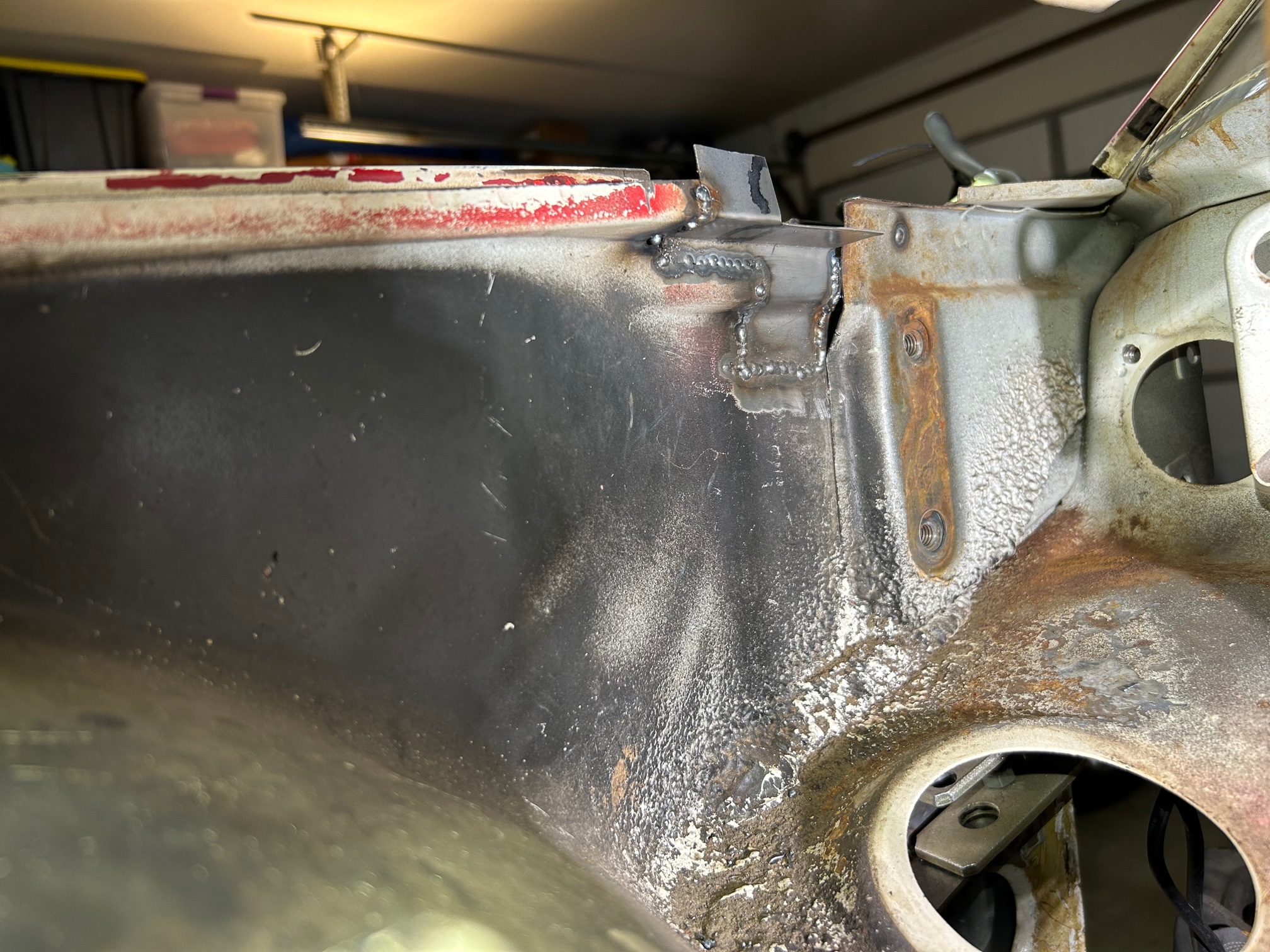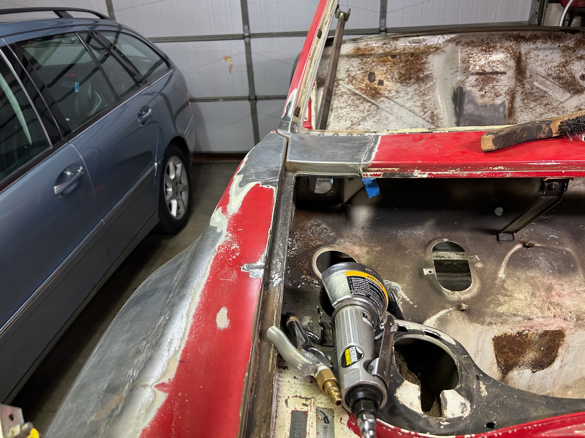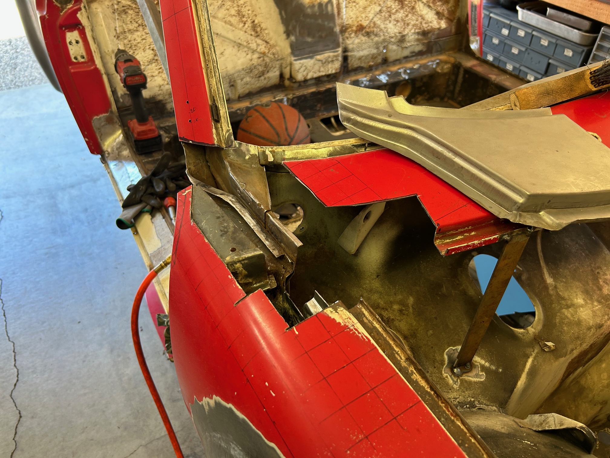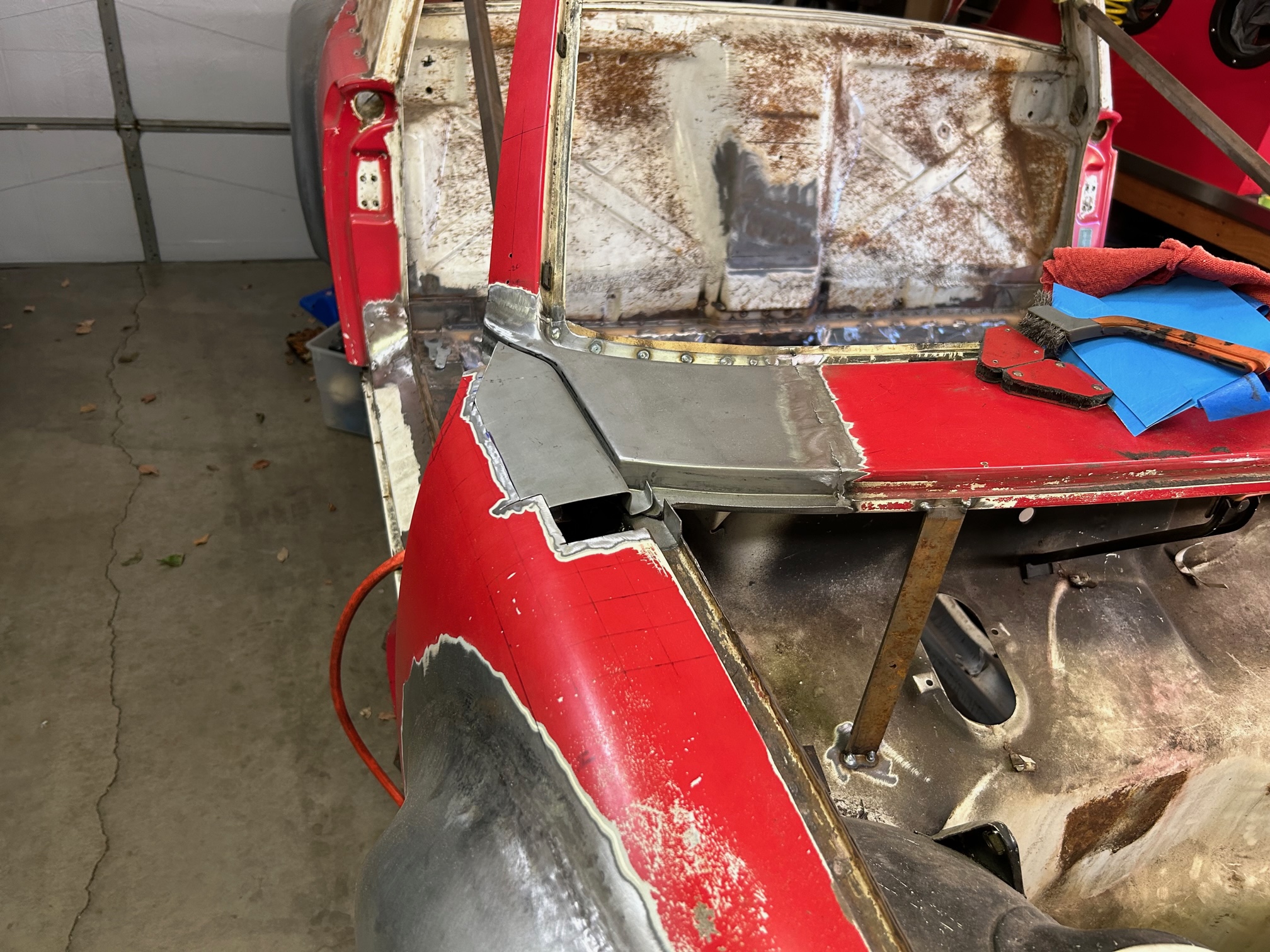 Thanks for sharing that. Yeah I'm going to do my best to re-use the outer "folded" piece original to the car. The inner radius issue I'll have to cross that bridge when I get to it. Hopefully I can massage the AA piece enough to tighten up that radius. Some hammering will be in my future. I used cleko's to "save the spot" where the corner piece goes to hopefully preserve the door gap. |