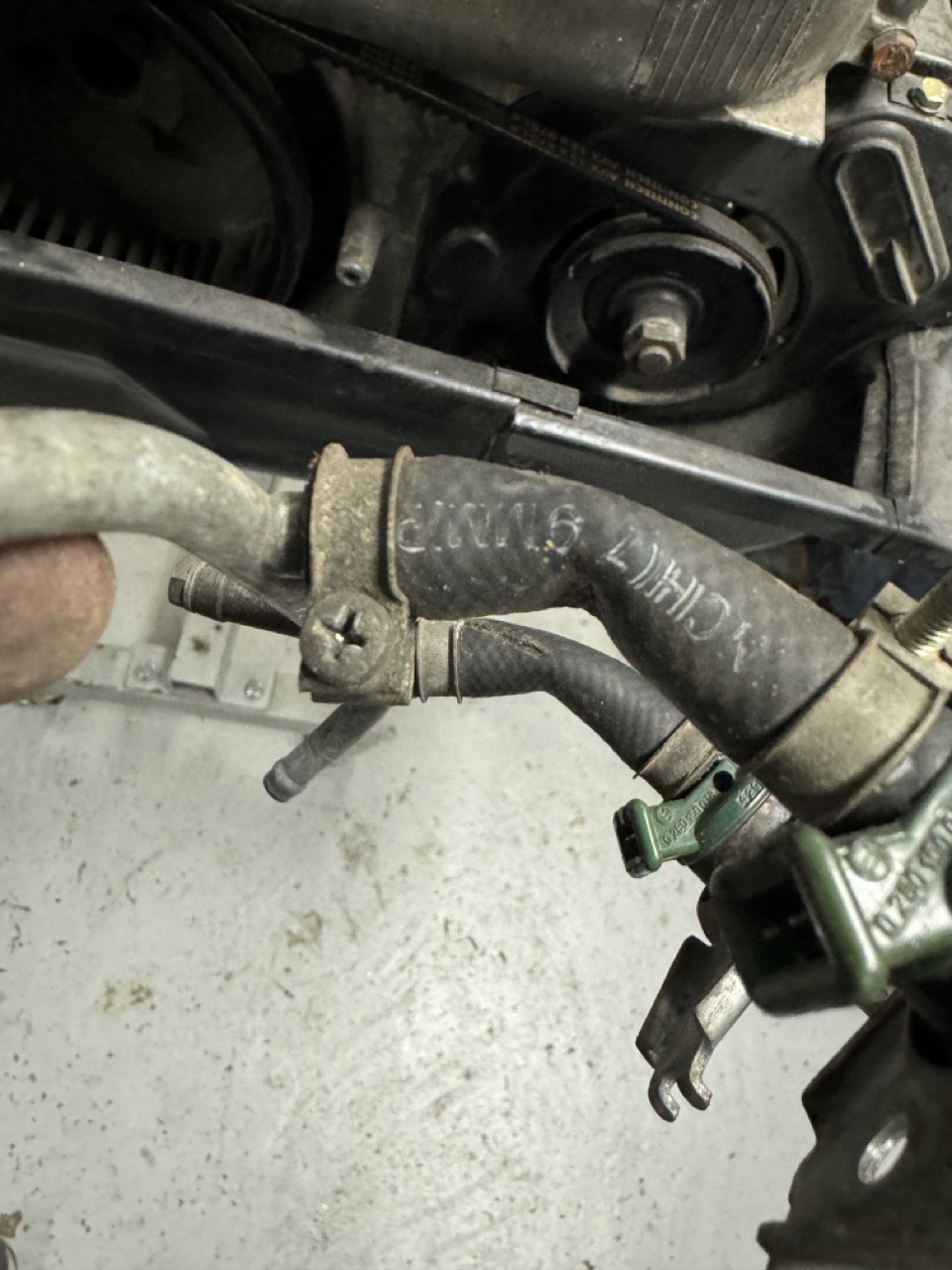 So, here's what I started with: As previously mentioned, someone put a fuel pressure regulator where the decel valve was supposed to go (and also left the small vacuum line open to atmosphere). I found more kinked fuel lines: All four of the injector fuel lines were like that. And, once I got the shrouds off, I found this: Can anyone tell what's wrong with this pic? I'll give you a hint -- there's no thermostat. |