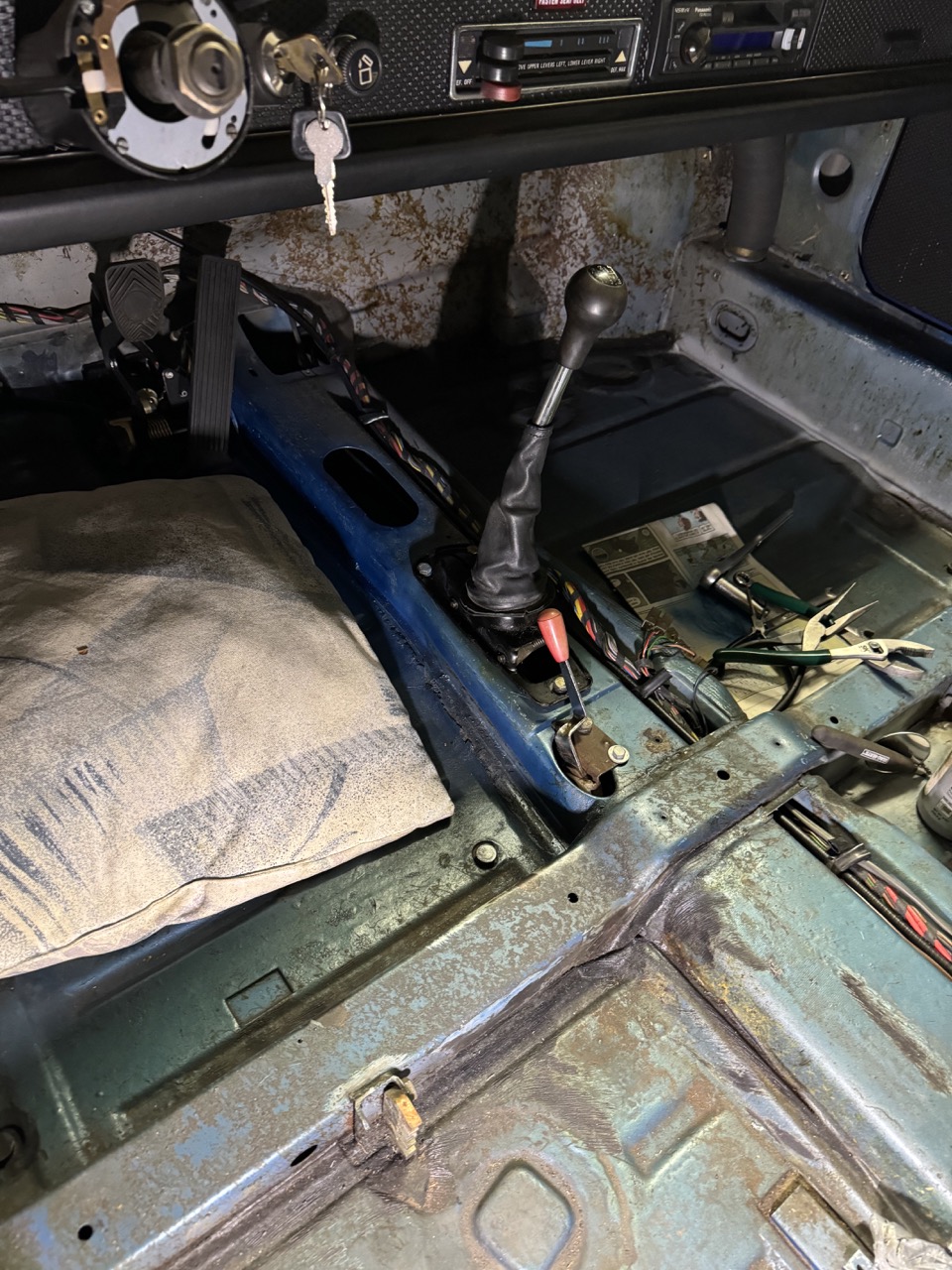 For now, I'm just going to leave the factory asphalt sound deadening, and will put new carpets over them. At some point in the future, if I keep the car long enough, I will eventually treat it to a full restoration that will start with stripping everything down to bare metal, and I'll deal with flooring applications then. |