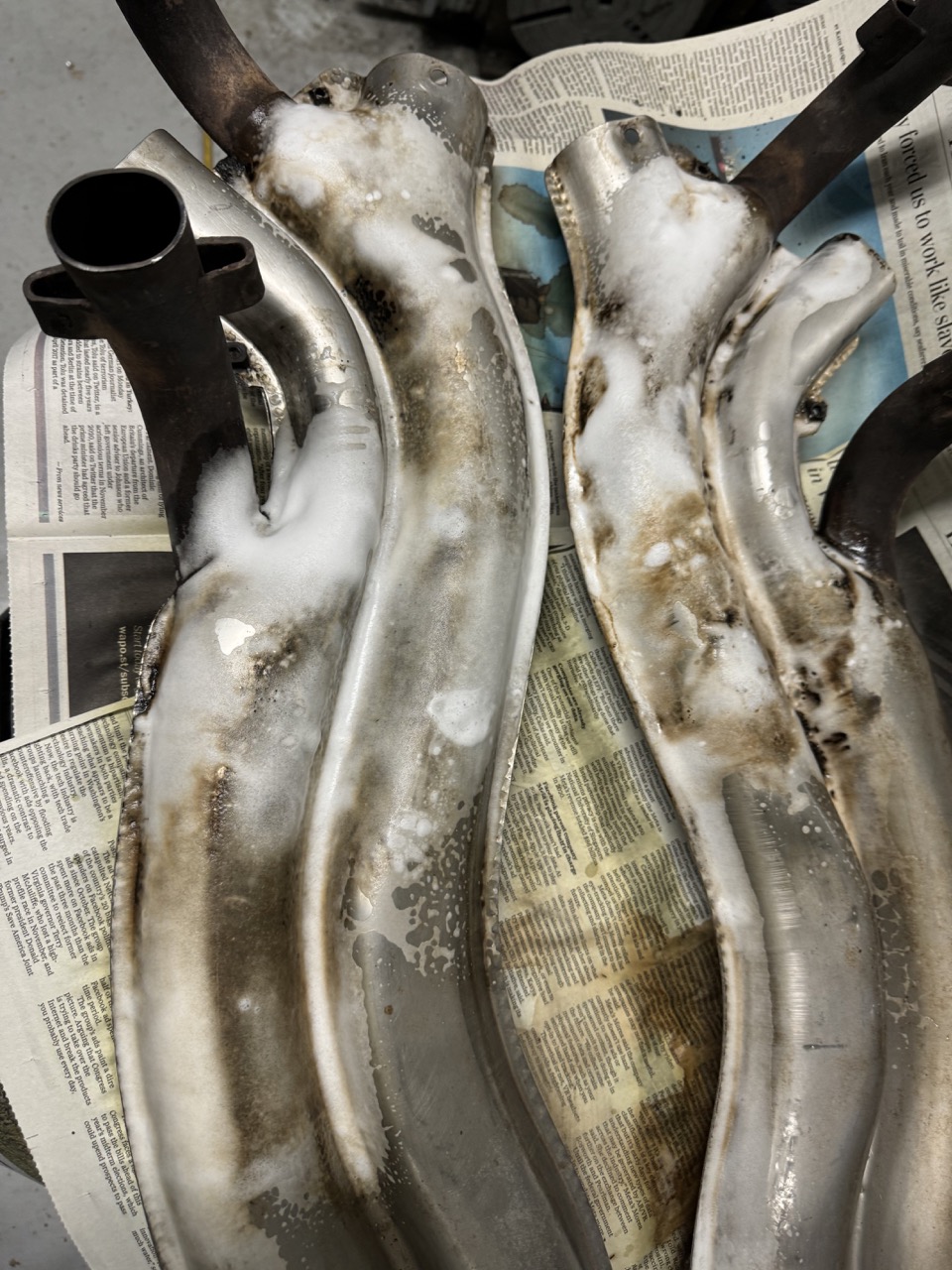 The heat exchangers cleaned up nicely, make sure you check the sealing surfaces. It's easy to have an exhaust leak when they do not seal good at the copper washers