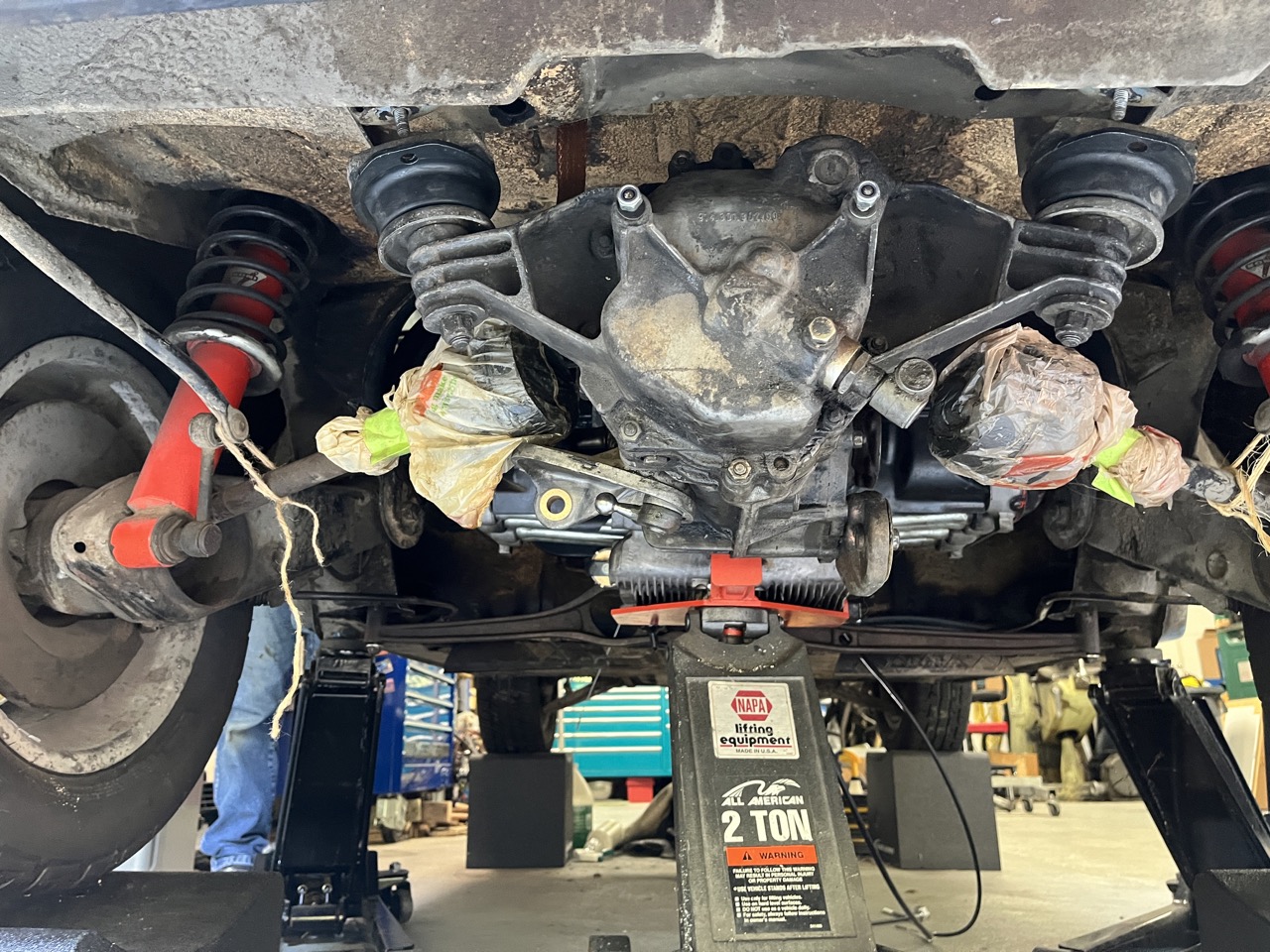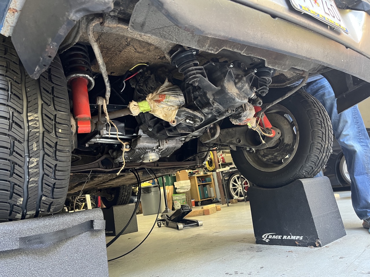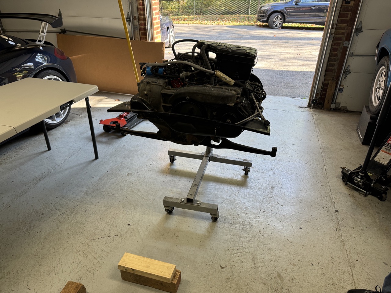 On the stand: Some friends came over to help. First step was to get the engine off the stand and bolt the trans and starter back onto it. We also got the car set up to receive: Then, we slid the powertrain into place. This was a multi-jack operation, since I don't have a lift. Getting close: And in!!!! (IMG:style_emoticons/default/piratenanner.gif) (IMG:style_emoticons/default/cheer.gif) (IMG:style_emoticons/default/aktion035.gif) It'll take a little while before the car's actually ready to drive. A whole bunch of things still need to be connected (cables, electrical, fuel, shifting, exhaust, axles, fluids, etc.). Plus, the last DE of the year is next weekend, so more time away from the car. But, I'm still hoping to drive it before it gets too cold out. |
