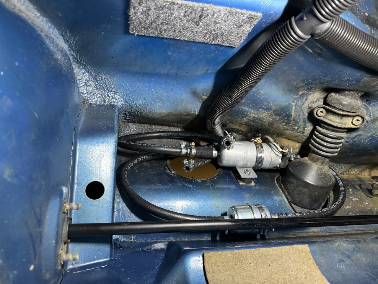 Spent the last couple of days working on the car, trying to see about rearranging the fuel pump and filter. I removed the tank, pump and filter, and then spent quite a while futzing around trying to figure out some place to mount both in the tunnel with the steering rack. Despite trying multiple different locations, ended up deciding that I still preferred how everything fit under the tank. Yeah, I know that means I'll have to pull the tank to change the fuel filter, but honestly, how often to y'all change your filter anyway?