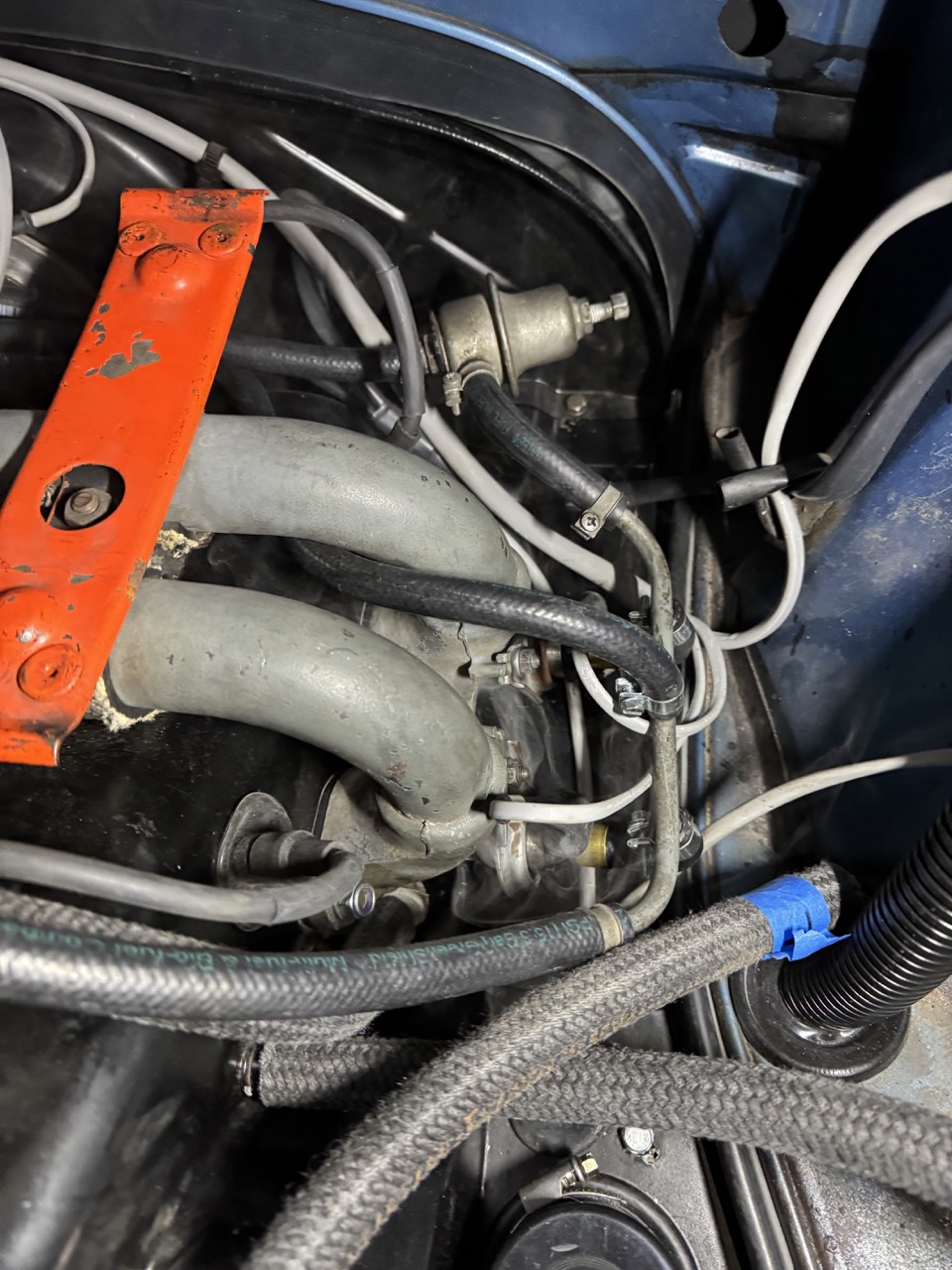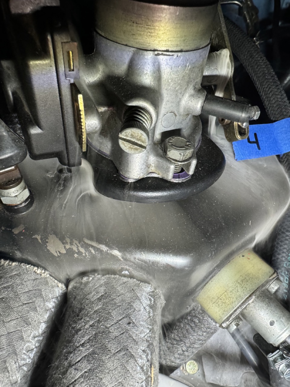 Yeah, I know I could have used baby oil instead, but my babies have all grown up and I no longer need to lubricate them, so we're out of that. (IMG:style_emoticons/default/tongue.gif) The adapters that came with the machine were very useful. There's an expanding bladder plug that fit very nicely in the top of the throttle body. Made it easy to hook up the machine. Only needed to plug the hose to the AAR. Turns out the driver's side fuel injectors weren't seated properly: So I took the injectors out, double-checked the seals were still in good shape (they were, since they were brand-new a couple of months ago), and reinstalled them. Once the injectors were re-seated, I turned the smoke machine back on, to verify they were sealing properly (they were). That's when I noticed smoke from both sides of the throttle body, through the shaft openings. My first thought was the TB shaft bore must be worn out. Then I realized the smoke had no where else to go except there. So, I decided to just start the car and see if I could adjust the idle. Once it completely warmed up and the AAR closed, I had no problem adjusting the idle to around 950-ish. (IMG:style_emoticons/default/piratenanner.gif) Could have even gone a little lower if I had wanted. Once that was done and everything buttoned back up again, my wife and I went for a drive! (IMG:style_emoticons/default/driving.gif) We only went to a local gas station to fill up, but that was another 6 miles on a car that did nothing but sit for my first 4.5 years with it. Also, my other orders finally came in. I already installed the LED headlights. (IMG:style_emoticons/default/aktion035.gif) Tomorrow, I'll work on hooking up the new heater booster fan hoses from 914 Rubber and installing the new seat belts from Seat Belt Planet. |