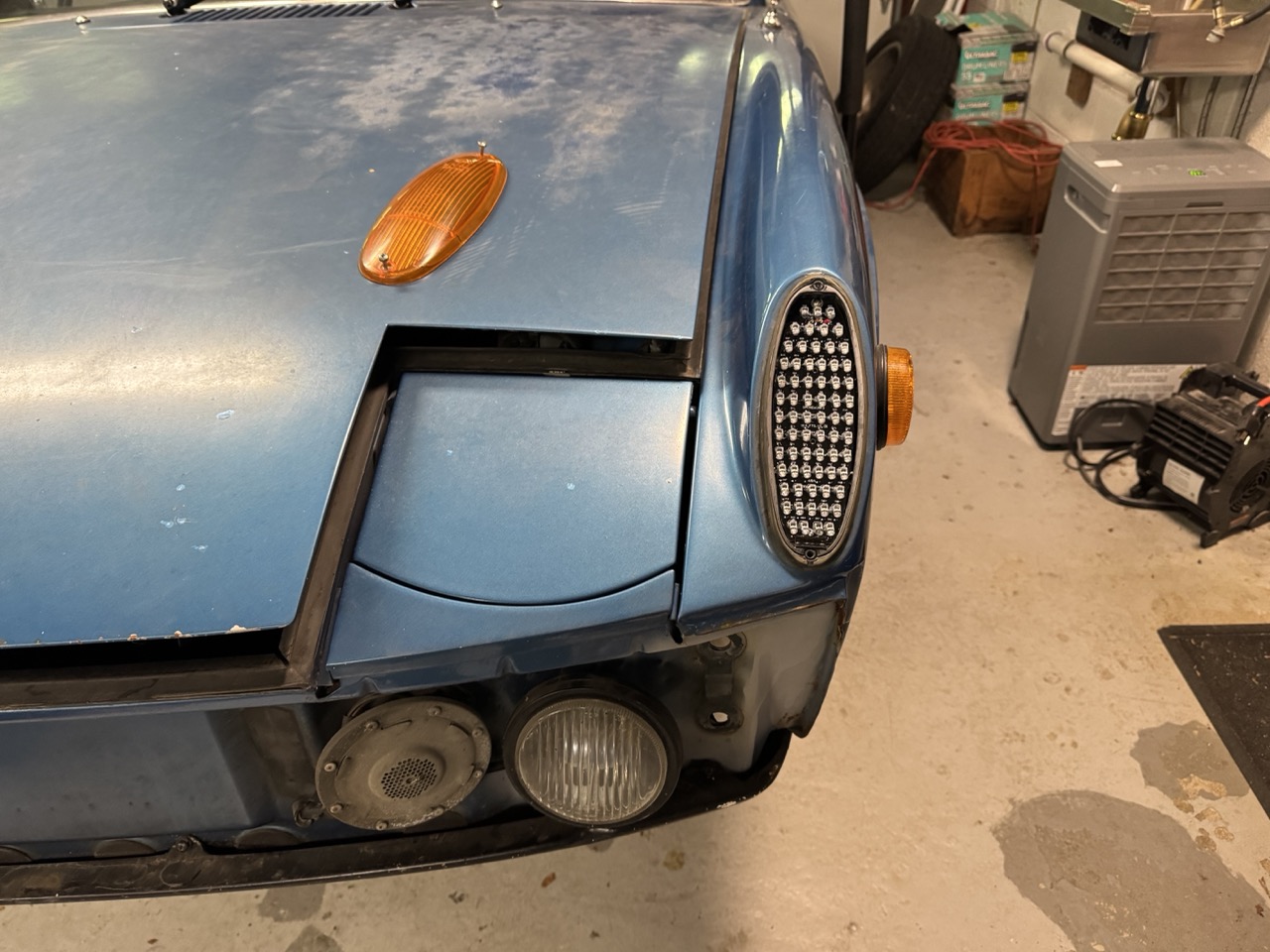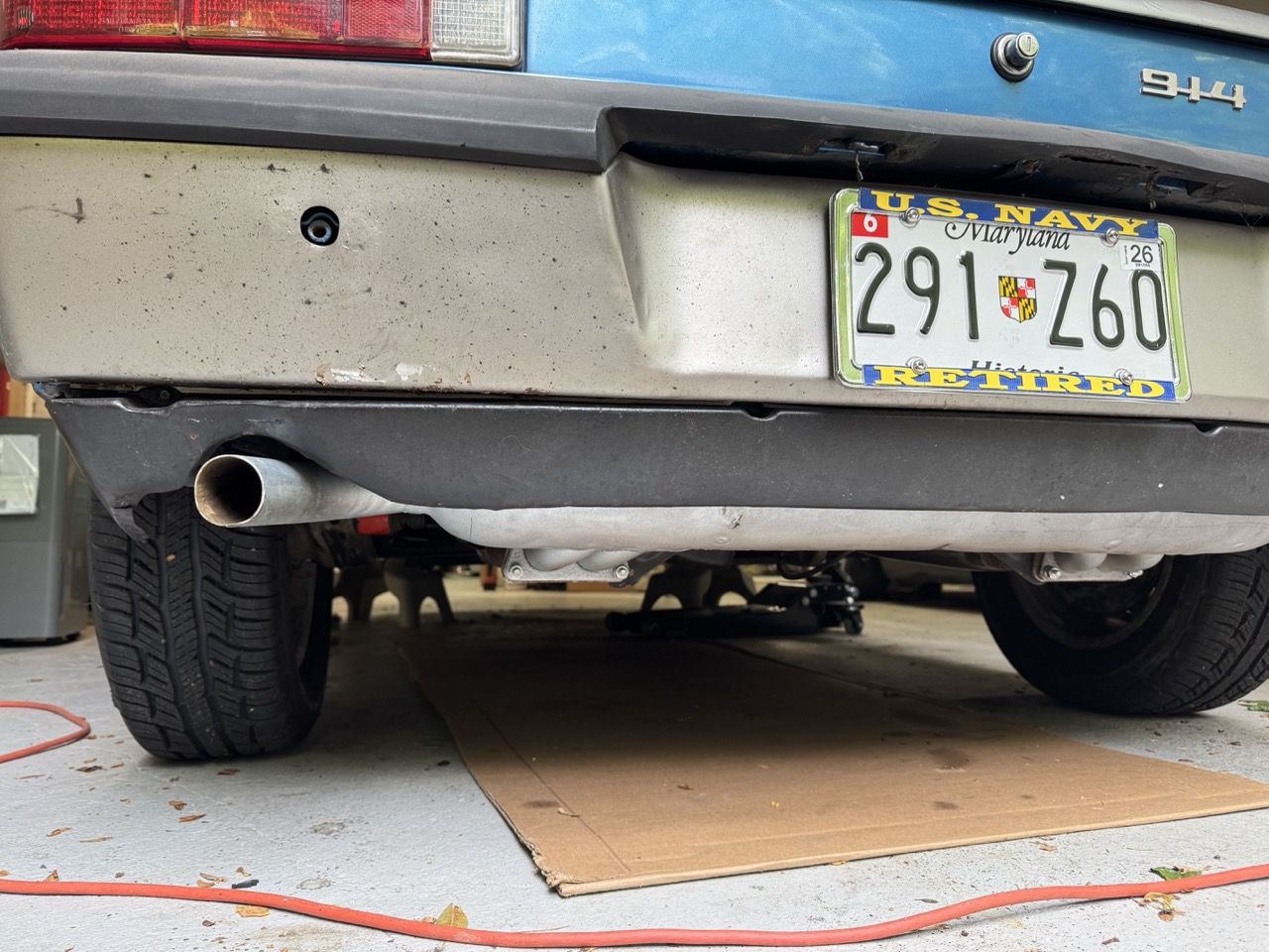 First, I installed the SpokeWerks LED front turn signals. Went in very smooth and easy. Then, I started working on installing the SpokeWerks LED fog lights. And got stopped by old age and possibly DAPO again. The old lights came out fairly easily, but it turns out the gaskets are shot and there are only 3 spring clips in each one. Don't know if the factory only put 3 in each, or if a DAPO lost a couple. Anyways, now I'm stuck waiting on a shipment from 914Rubber. While I was working on the front end, I also treated a few rust spots hidden under the front bumper. Finally, I replaced Ben's muffler with a used stock muffler. Ben's muffler is incredibly well built, but it's a touch on the loud side. The stock one is noticeably quieter -- even the wife could tell the difference from upstairs. |