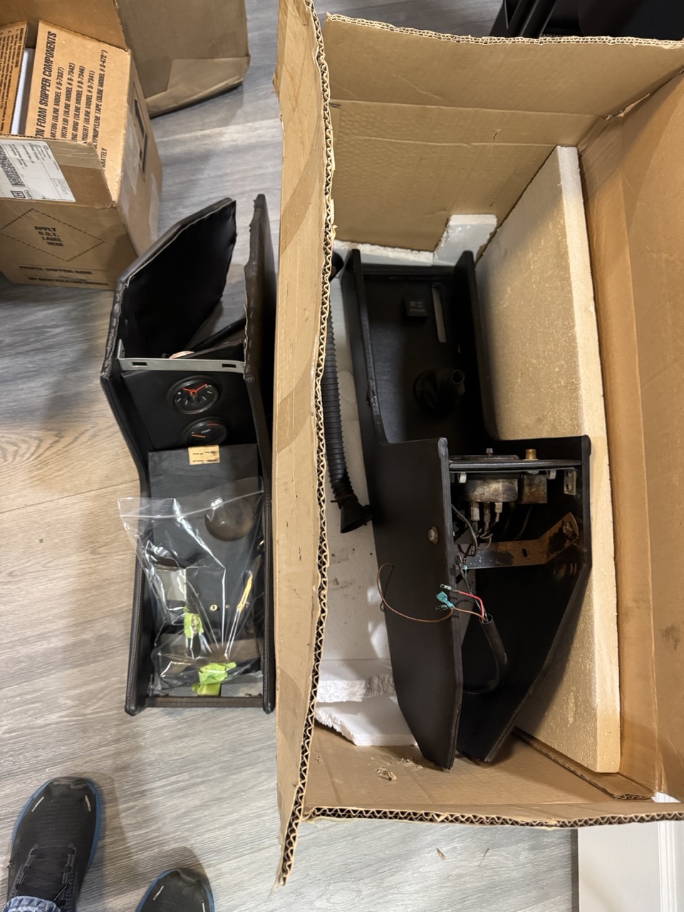 I spent the day piecing together a front center console and then installing it. I had the console that came with the car that was in reasonable shape, but the horizontal flat piece was broken across the shifter hole. I also had a second one that I bought from @nditiz1 years ago, which was in rougher shape but the horizontal piece was in good shape.