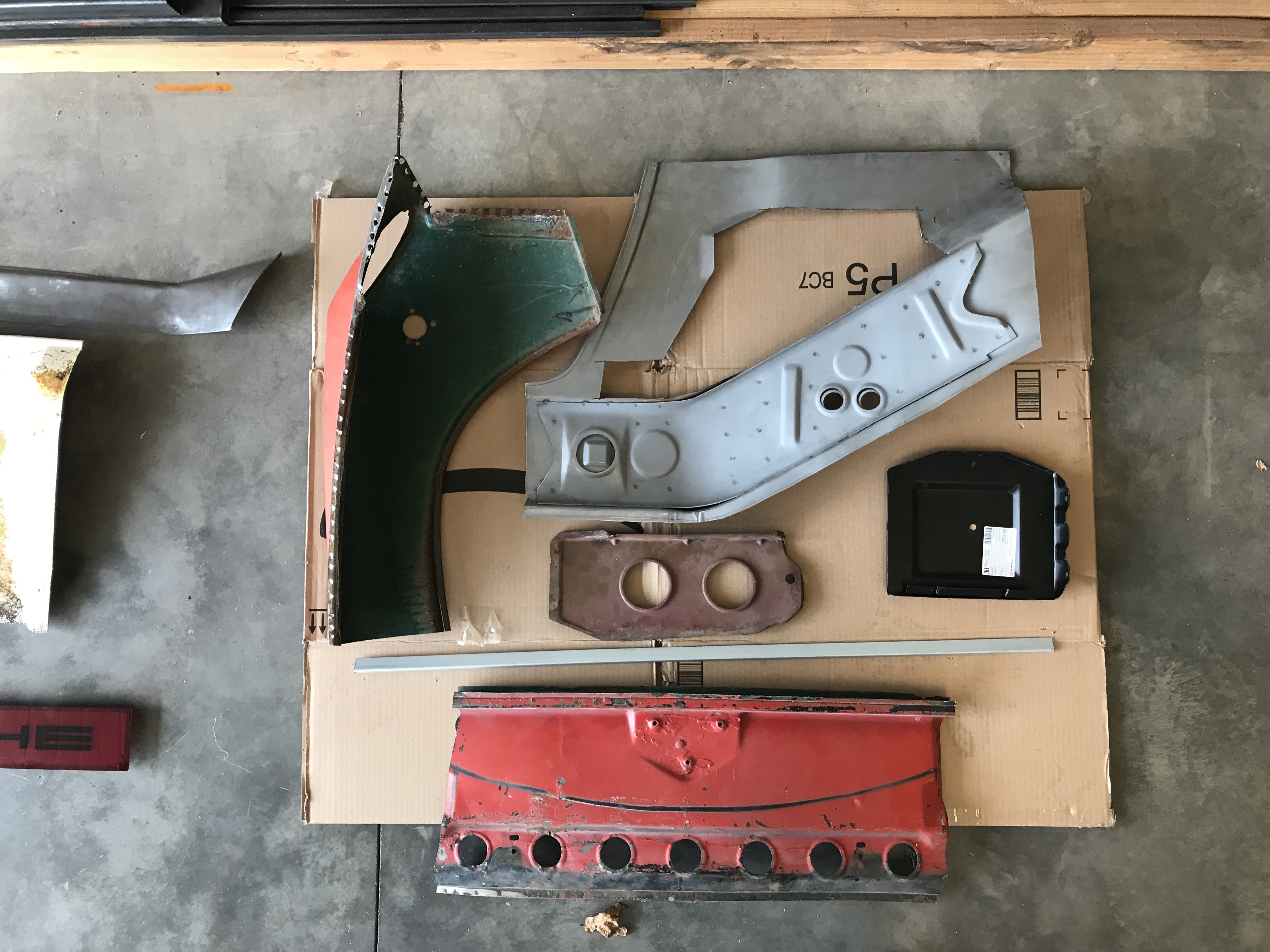 RD engine lid hinge brackets, pair (new) $40 SOLD AA right rear inner wheelhouse panel, center section cut out (new) $50 SOLD Left front fender, front half (good used) $25 Right vertical front trunk support (very good used) $15 Center part of front panel (good used) $10 SOLD Rear jack point gussets and donuts, left and right (used) PENDING and 914 rear reflector panel (very good used except for chip on lower left corner) $15 SOLD all prices plus shipping from Colorado Attached thumbnail(s) |