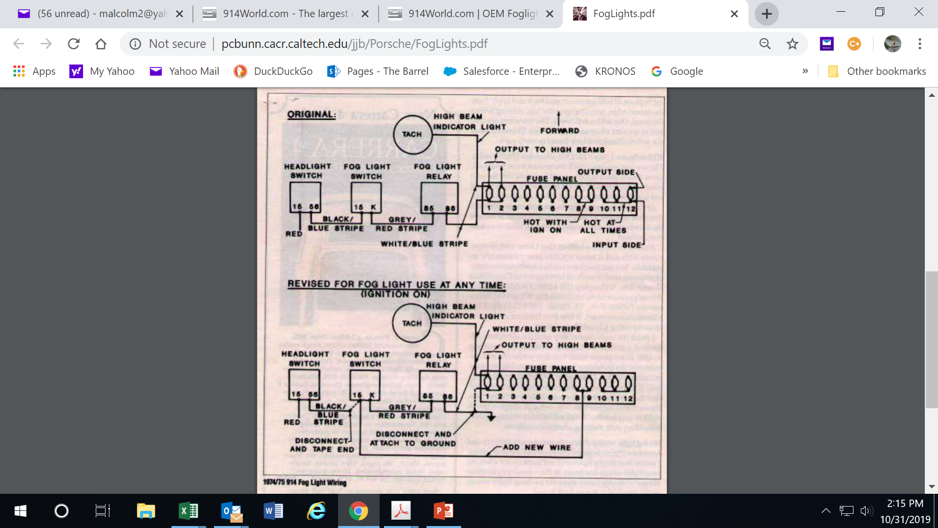 I would like to get the fog lights working on my 1976 914 and would appreciate any help from the community. Car had AC but that was removed before I got it. All other lights work fine and car runs well.