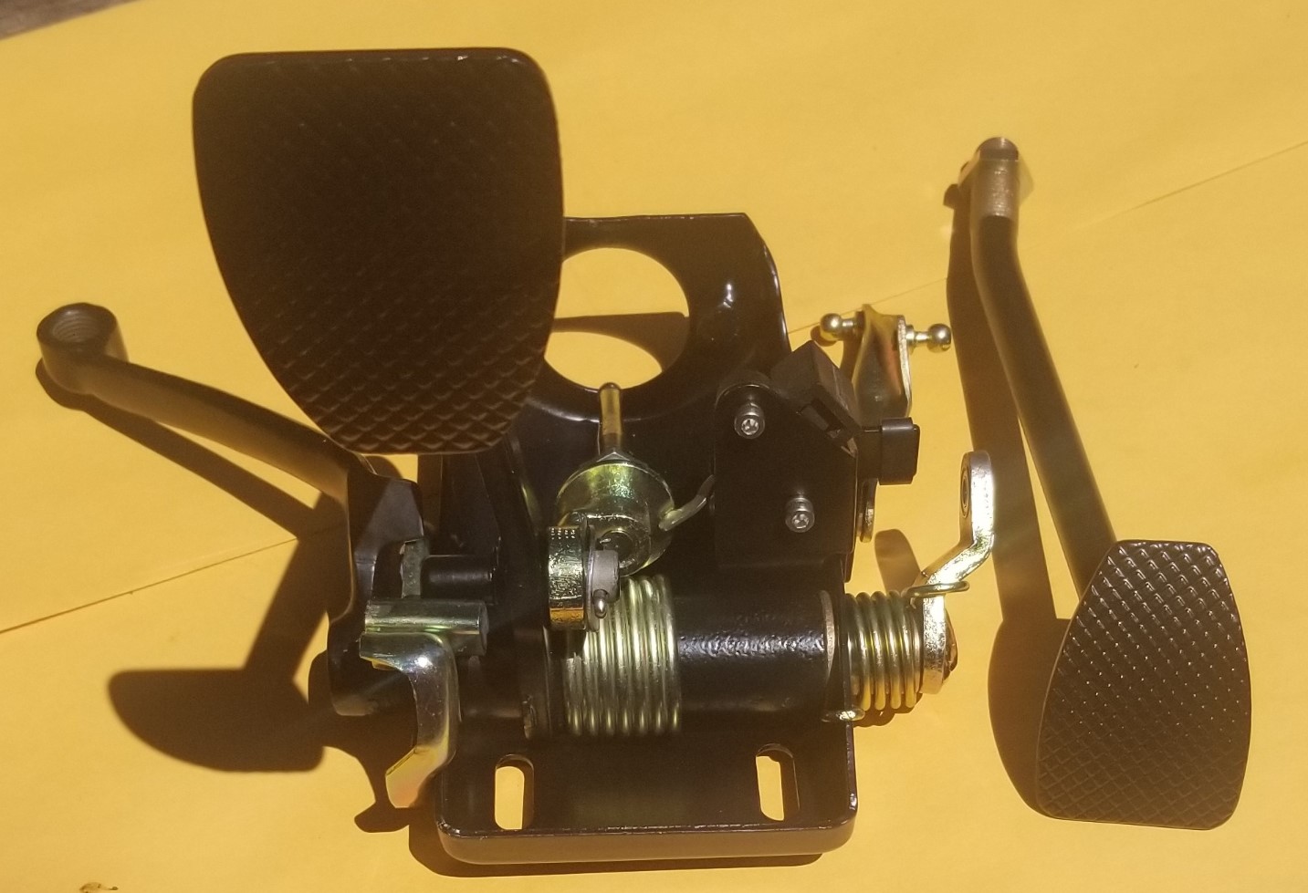 Using a ball bearing allows the clutch clevis pin to rotate with the bearing and not wear a groove in it. The remaining bushings are bronze. New rubber stoppers are installed. The housing, cross flange, clutch arm and brake push rod zinc plated. The housing is then powder coated as are the pedals. New or cleaned brake light switches are used. The springs are either new or replated. I had to increase the price due added tooling and machining costs. I can send out a restored set first allowing swapping out the pedal set at one time. Acceptable cores need to have both pedals moving and a good brake light switch. Attached thumbnail(s) |