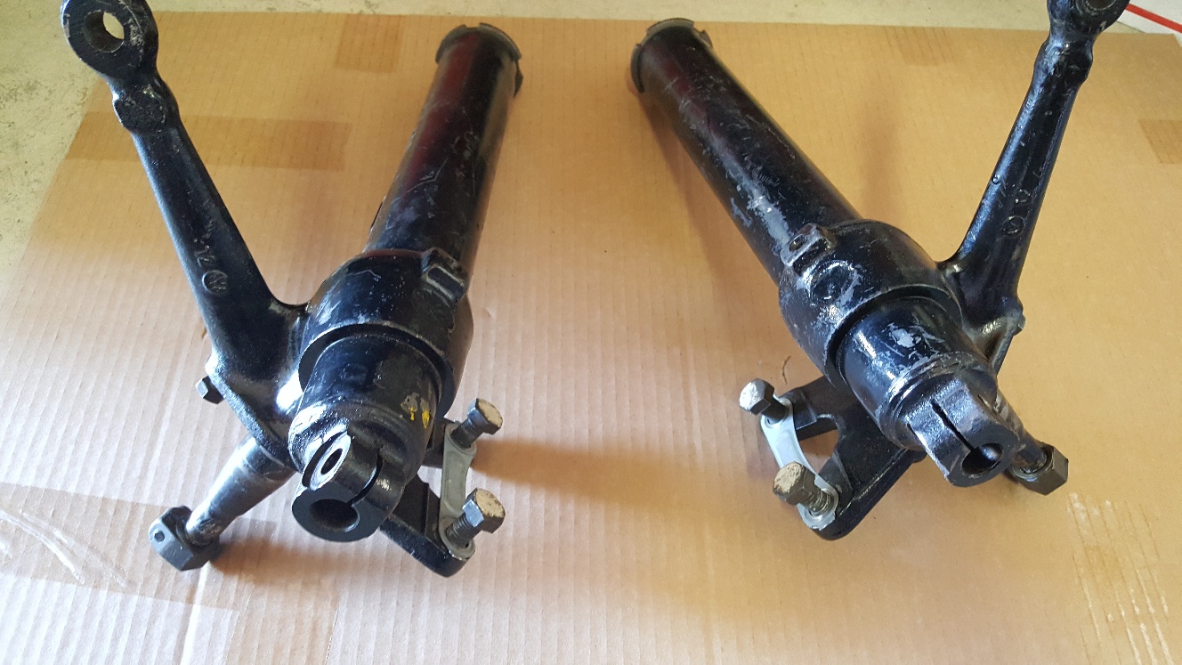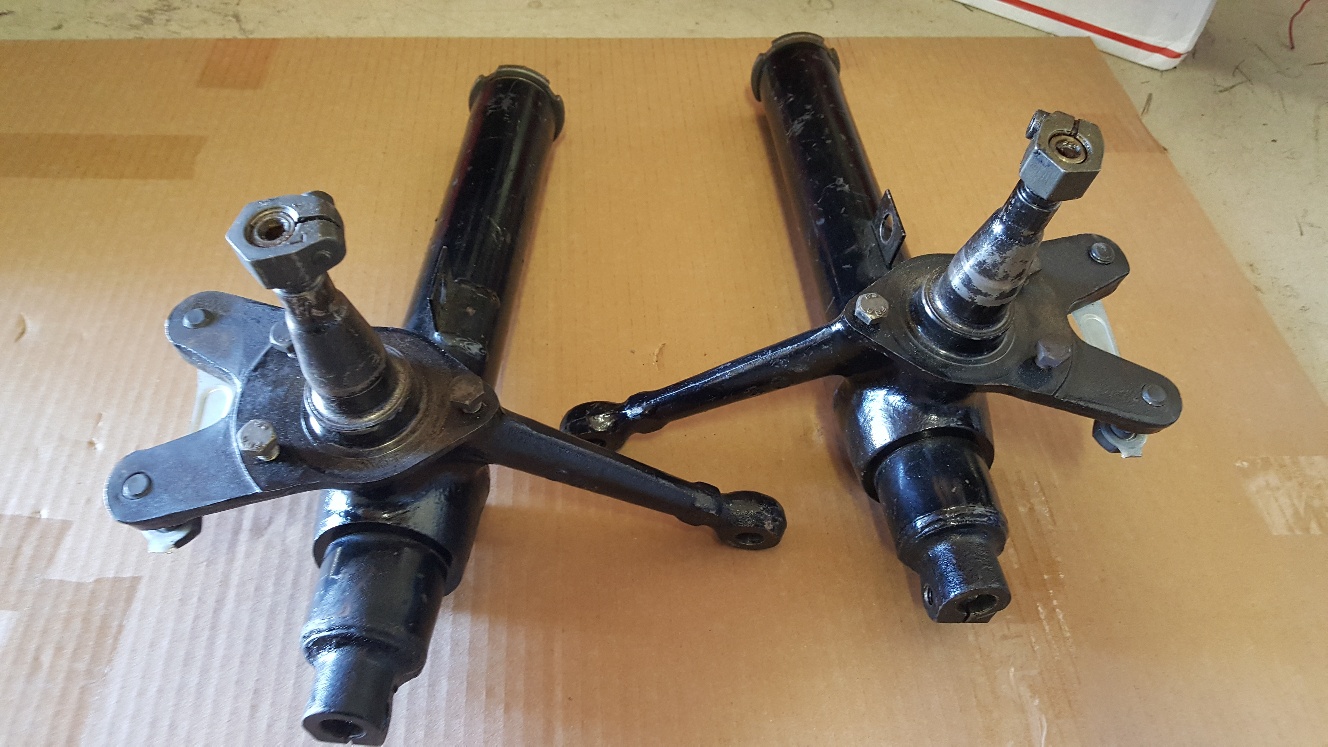 Pair of early 914 front struts / spindles with pinch bolt ball joints. Only scratched up from storage. (Had these for 20 years, the person I bought these from took them off of a 914 back in the 80's, painted them to preserve / stop spindles from rusting, these have not been on a car in almost 40 years) $140.00 pair obo plus shipping from 95688 (see pics in this post and the second post below) SOLD! Defrost / Heater Fan splitter: $25.00 includes free shipping in CONUS SOLD! 2.0L D-Jet Ignition Distributor with good set of trigger points, shaft is tight, ground strap is still in tact, I may be able to find a good cap and rotor. Part # 039 905 205A Asking $50.00 plus shipping from 95688 (IMG:style_emoticons/default/smilie_pokal.gif) Attached thumbnail(s) |