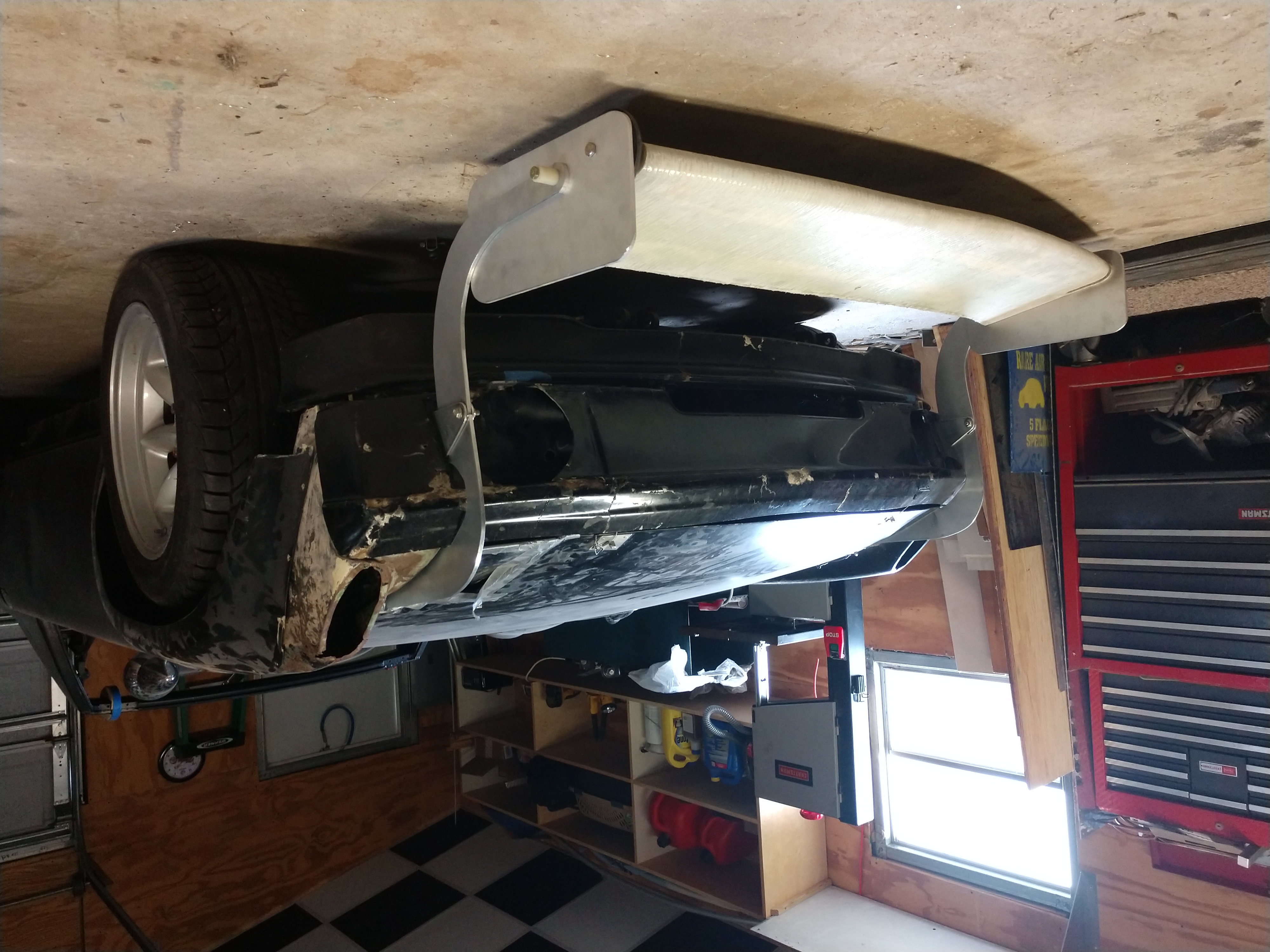 I don't want to create a high pressure area behind and above the front wing. Phone sucks, click on the picture and the car car lands and stops flying on the ceiling. |