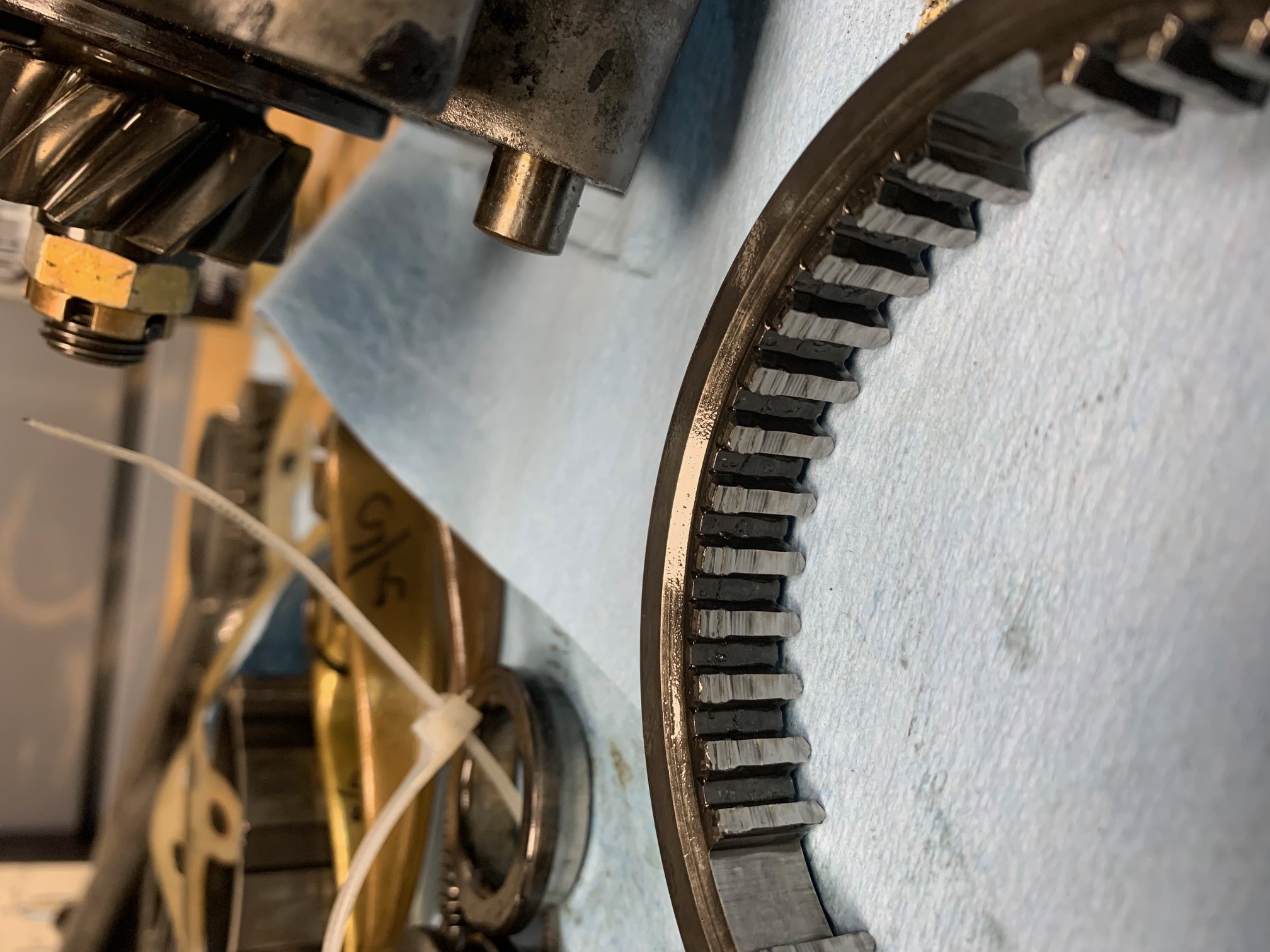 Ok, this one i do not understand. After watching Dr Evil's video, I decided to exchange the selector for 2/3 with the selector for 4/5. Though the teeth on the second gear side were still in good shape, I was putting in new dog teeth and thought this to be a good path. Thank you @Dr_Evil So, I break down all of the gears, replace dog teeth on 1st and 2nd. Last thing to do is to swap the selector. I removed the selector from the 4th/5th position and this is what I found. The side that faced 5th gear has NO teeth. They are not worn off, they are evenly flat all of the way around! (IMG:style_emoticons/default/blink.gif) (IMG:style_emoticons/default/confused24.gif) The tranny had very mild amounts of metal in the oil, i put a magnet in the oil after it was drained to check. Pretty sure they were not ground down! Fifth gear worked great - never ground or had trouble. The fifth side is FLAT, (above) not a point nor ANY wear where the points should be. The fourth side is perfect (Below). Sharp even teeth with very little wear. Has anyone seen this before? Guess I will need to either buy a 2/3 selector or flip it and hope for the best.......sigh....... Any guidance is welcome..... (IMG:style_emoticons/default/confused24.gif) |