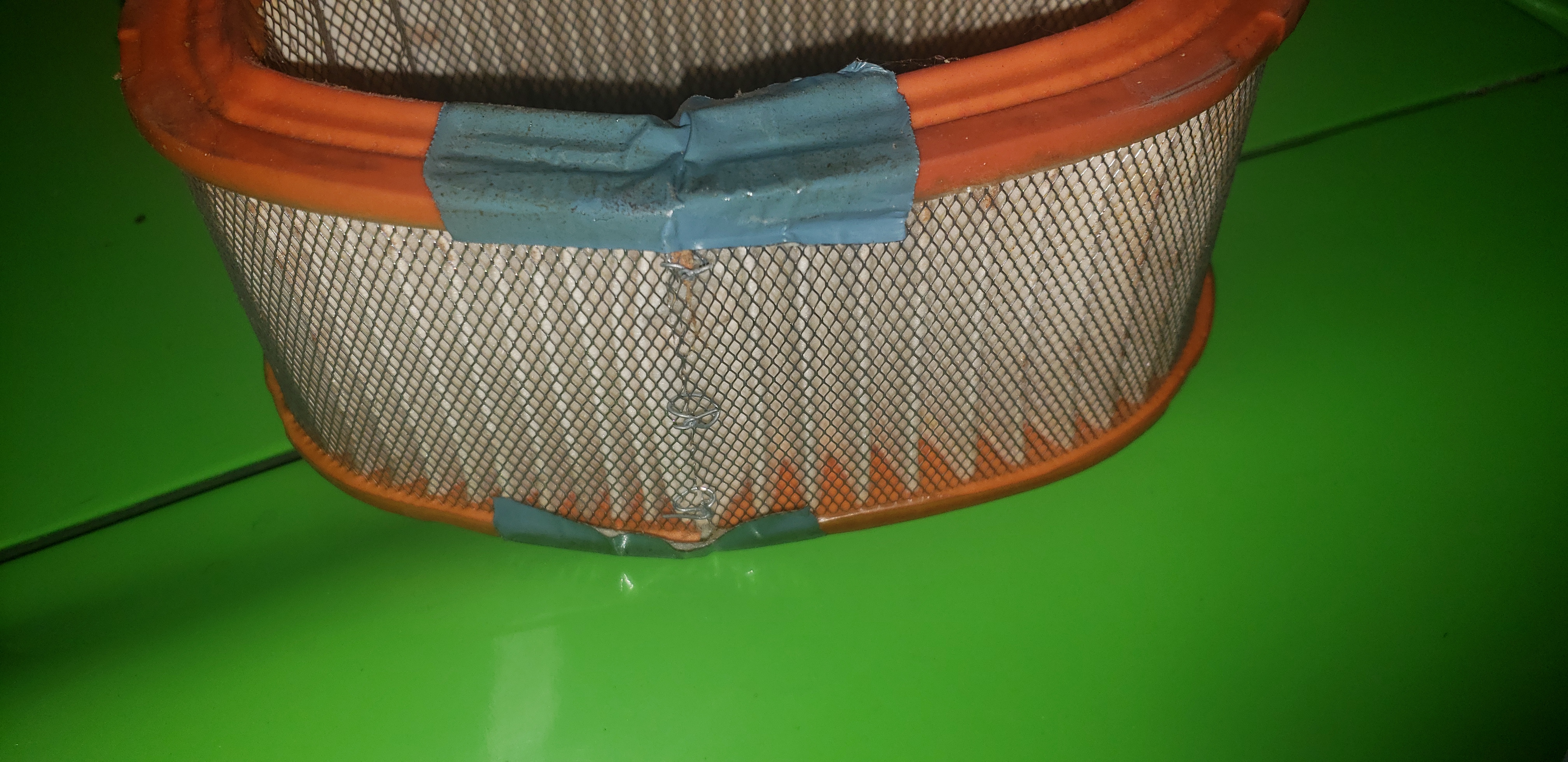 Here's the /4 splice detail....cut the filter then cut back enough to make the wire mesh mate up and overlapped the paper a bit & wired it together. Ugly but works....