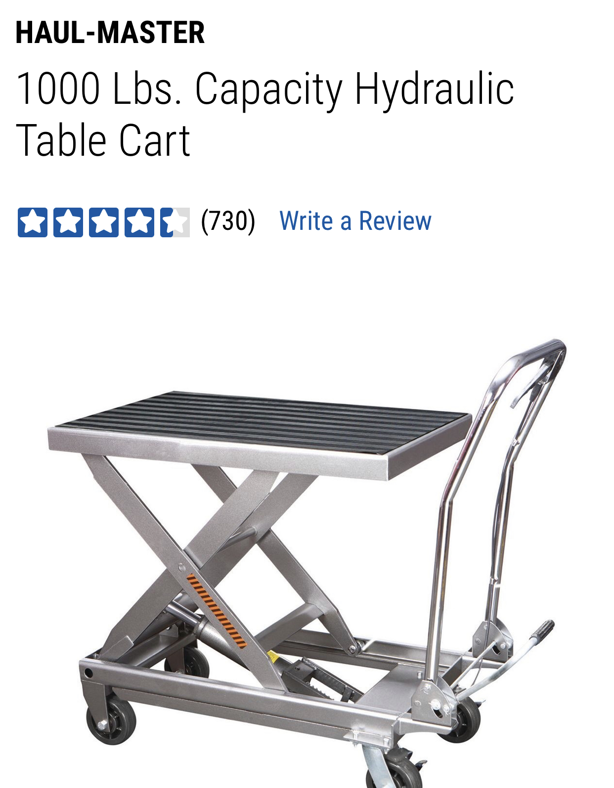 The shop where I used to work has used the HF lift tables for years for 911 engine and trans drops. They have six of them. None have ever failed. They just buy more because they are so useful. That’s about 600-700 lbs on a 3.6 with trans. I’m betting there is no difference in the hydraulic cylinder from harbor freight compared to any others. Use what you feel comfortable with but know that most of what differentiates different brands is only the name and the price.