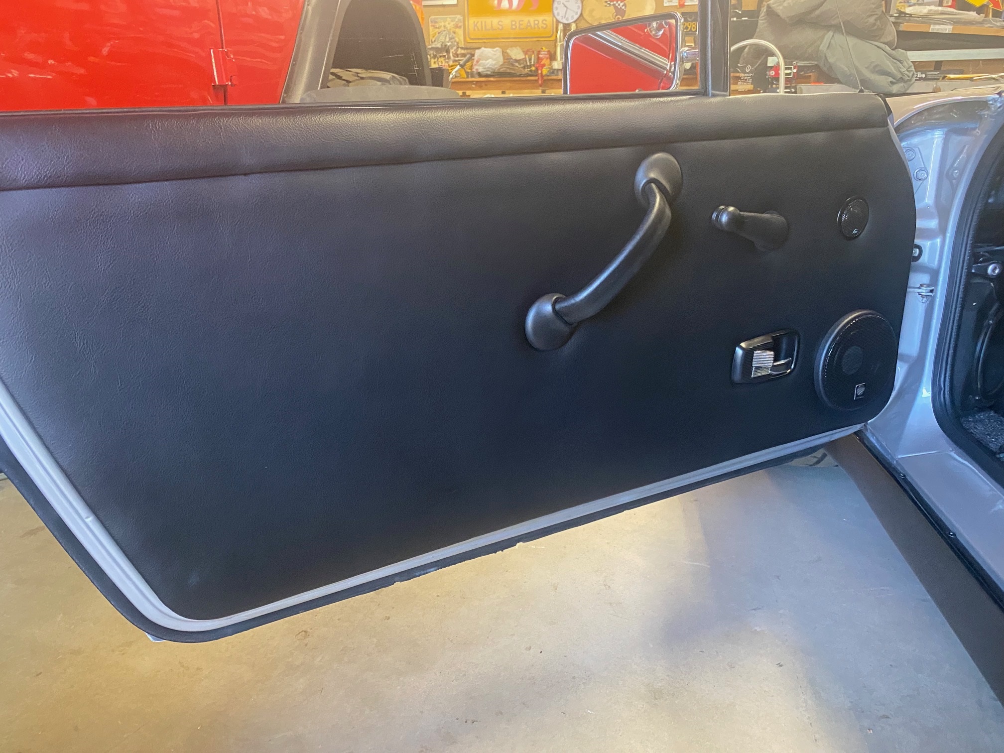 Mine are about done here. Lots of hours but redid the entire door panels with it. Ended up fabricating the door pull mechanism too. Not an easy task. Fiberglass trim pieces to cover up my mechanism, but turned out nice. Have not cut out the window cranks yet.
