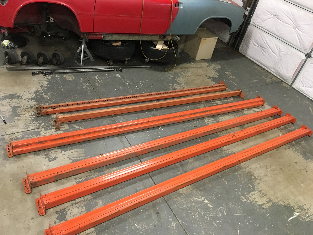 At the time, I had just moved to California from Canada and the 914 was my only mode or transportation (excluding my bicycle)! (IMG:style_emoticons/default/smile.gif) (IMG:style_emoticons/default/driving.gif) Therefore I needed a quick fix for both driver and passenger side jack point pyramids that were rusted and had impacted the longs. I bought a used 120V welder on Craigslist and proceeded to make this repair in my driveway (no garage on the rental). I had access to a few very basic tools too. Anyhow, the Brad Mayer repair panels did the trick and allowed me to enjoy my 914 for about 10 years before I started this now rebuild project. (IMG:style_emoticons/default/smash.gif) For the past while I debated weather I should go back and revisit this repair or simply continue as is. That was until I decided to remove the back portion of the Brad Mayer panel on the right side and discovered this! (IMG:style_emoticons/default/unsure.gif) So clearly this will require a thorough investigation that will get pretty deep. (IMG:style_emoticons/default/icon8.gif) So, although the repair panels were a success as they did what was needed, it is time to go through all of this and fix it the right way. (IMG:style_emoticons/default/smash.gif) Step #1, getting the proper dolly for the car. I have no clue how far this will go, and I need something to move this shell around anyway so... After reading many of the rebuild threads here, I decided to make myself a similar copy of the Jigster engineered by @Jeff Hail (IMG:style_emoticons/default/pray.gif) With today's steel prices, the 4" x 2" x 1/8 20ft. that Jeff used are about $150 ea. and 2 are needed for this build. Instead, I went the frugal way and got some used racking beams and used heavy duty casters. (IMG:style_emoticons/default/smile.gif) Total investment, a whopping $72! (IMG:style_emoticons/default/sunglasses.gif) Here are the beams purchased: Now to cut these square requires the correct tool that I obviously don't have as I am not a metal fabrication shop... (IMG:style_emoticons/default/rolleyes.gif) This is where reading can give you tricks! (IMG:style_emoticons/default/smile.gif) I got myself a 10" thin abrasive disk with a 5/8" arbor and set it on my wood miter saw. Make sure your disk is rated for the speed of your saw! Time to do some cutting! ![]() And here are all the parts cut to length within less that a 1/16" off. (IMG:style_emoticons/default/smile.gif) Time to burn metal (IMG:style_emoticons/default/welder.gif) Using a laser I set the beams leveled and tacked the 4 parts of the frame. After measuring the diagonals, I was within less than 1/16" and nicely leveled. Time to fully weld this thing! ![]() Flipped upside down to do the legs and casters. ![]() For the casters I got lucky as a piece of 1" x 1" tube I had made the perfect spacer for the caster plate. The correct way would have been to have a plate and bolt the casters, but I went the easy way and just welded them on. I doubt I will ever have to replace them anyway... ![]() Once done I sprayed some left over rattle can paint over the welds after wire brushing the areas. I am very pleased with the result and can now plan on setting the shell on it and begin the long repair how ever deep I need to go. I know I will be able to make which ever brace will be needed for key reference points such as suspension console. It was a long day but well worth it! (IMG:style_emoticons/default/smile.gif) ![]() ![]() |