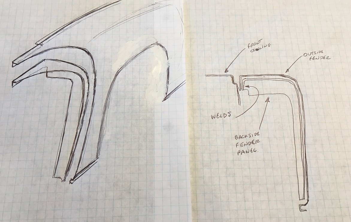 Original post; I got side tracked on my Microsquirt build as I have decided, after 11 years of ownership, to finally get my car painted to get her ready for her upcoming 50th birthday. (IMG:style_emoticons/default/smile.gif) Knowing these endeavors can take a lot more time than initially planned, I hope to make it in time... (IMG:style_emoticons/default/wacko.gif) Well that date has long past now... (IMG:style_emoticons/default/rolleyes.gif) Originally bahia red 73 1.7. The goal is a narrow body Front: 914-4 A arms with Rear: Drilled hubs, But before I get the pleasure of installing all of these beautiful fresh goodies, I need to tackle the not so fun stuff... (IMG:style_emoticons/default/headbang.gif) I have already started fixing some of the rust issues and will share that progress in the near future but right now, I wanted to post some of the issues i have on the passenger side front fender. (IMG:style_emoticons/default/sad.gif) I have searched and read many of the builds here but I would like some inputs from the people who have gone through this mess. I am trying to understand the construction of the rear part of the fender, more precisely the area joining the front cowling. Below is a sketch of how I think it is made but i would like someone to confirm... Having removed the seam sealer in the upper rear area, I have discovered "this" (IMG:style_emoticons/default/dry.gif) which is not really unusual, but clearly a pain to fix. I am not sure though what I am looking at. If my sketch is correct, I guess the inner rusted layer is from the fender rear bulkhead that actually becomes an inner layer on the rear upper point of the fender by the door and cowling junction. ![]() ![]() I might be able to cut this from the underside preventing me from cutting the outer surface of the fender. But I would like to better understand what is happening at the junction to the body. How many layers are there from the fender, one or two? Is the metal peeling off at the joint to the body the metal from the bulkhead/inner layer, or is it the outer fender layer? As a reference, this if the situation of the channel, surface rust, but how bad? Is there a way to better know without destroying? Maybe poke with a screwdriver? (IMG:style_emoticons/default/confused24.gif) ![]() Comments appreciated (IMG:style_emoticons/default/smile.gif) |