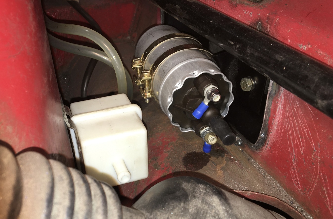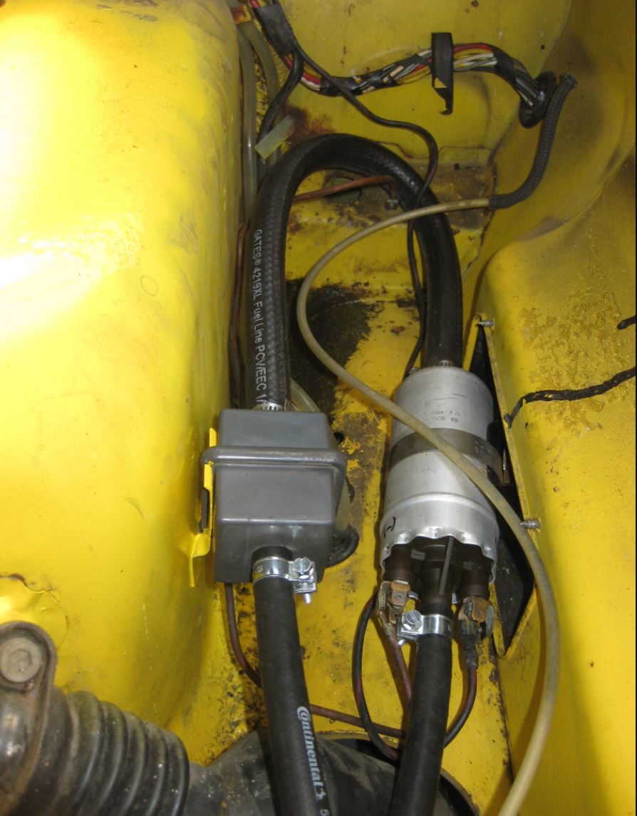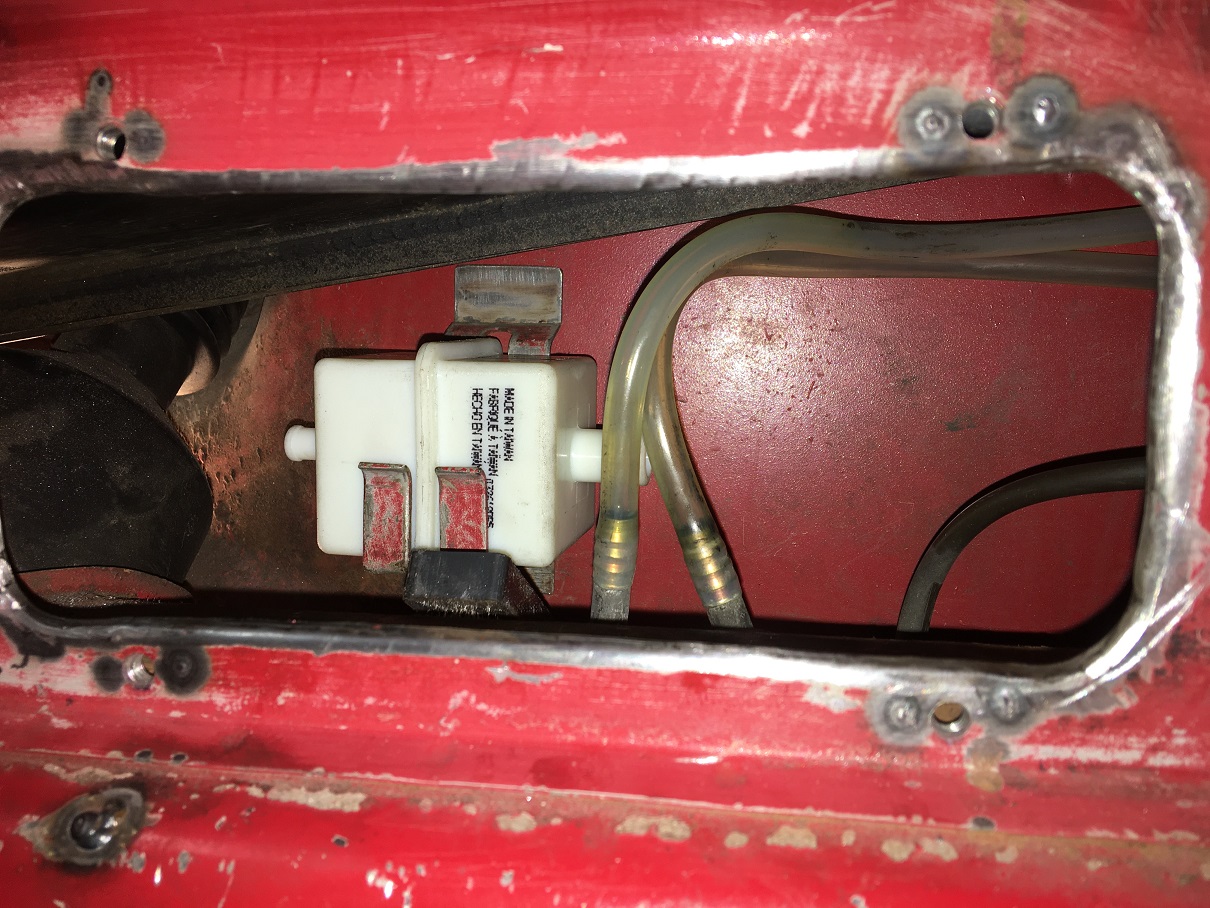 Being stuck at home for the Holiday's, I had the chance to work on the fuel pump relocation. I went the route Porsche did for the 75-76 models. Having bought a pump panel a while back from Bruce Stone, this was the foundation for this little project. I also have all of the hardware to install the new 2 port Bosch pump. New fuel pump assembly on my 75-76 panel (IMG:style_emoticons/default/smile.gif) ![]() As mentioned, in 75 Porsche relocated the fuel pump to the front to eliminate the common fuel vapor lock issues that many of us have already encountered. (IMG:style_emoticons/default/rolleyes.gif) Below is a picture of a stock 75-76 setup. We can see the pump on the access panel, and the filter mounted on the opposite firewall. The fuel filter featured a tab on one of the mid plane ridges that would slide into the fork shaped bracket. Unfortunately these filters are very hard to find now. Since I plan on putting a lot of miles (IMG:style_emoticons/default/driving.gif) on my car over the next 30+ years (hopefully), I want to use the readily available square filter which looks identical to the rare one with the tab, but without the tab. (IMG:style_emoticons/default/smile.gif) Stock 75-76 fuel pump/filter setup: Hard to find 75-76 fuel filter: Based on Porsche's concept, I decide to removed the filter bracket located within the passenger side engine body mount as seen on the right side of this borrowed picture. I will recycle this filter mount and install it under the fuel tank. ![]() After cutting, straightening, and modifying the attachment points of the bracket, I tried my cheap and readily available square filter in it. Very nice snug fit, this will work as it was designed to work. ![]() Now, on to the body modification. First step, establish the location for the 75-76 pump access panel and drill pilot holes in the firewall. Next, using a hole knockout tool, I generate the four corners. Then I cut the opening leaving about 1/4" metal to create a folded edge like the factory did, but not as nice though... (IMG:style_emoticons/default/rolleyes.gif) I should have kept material to create the folded corners but I thought it would be difficult to achieve in this tight area and without the proper tools. So instead, I welded in four strips to make the corners. Then I drilled the four holes and tacked M5 nuts to mount the pump access panel on the bulkhead. After some trimming and massaging, here is the final result with the pump access panel installed. The opening is pretty much the same size as the panel flange: Trunk side view: Last task, install the recycled filter bracket. Measure twice weld once... Using the new firewall opening, and installing the fuel tank back in, I carefully established the best location for the filter bracket, making sure there is enough space above the filter to remove it once the tank is in place. Mock up before welding in place. Notice the edge of the black fuel tank running above the filter. After fixing the filter bracket with a few tacks, here is the final result: And now with the pump and filter in place: Another angle: Front trunk view: Another item crossed off from the list! (IMG:style_emoticons/default/beer3.gif) |