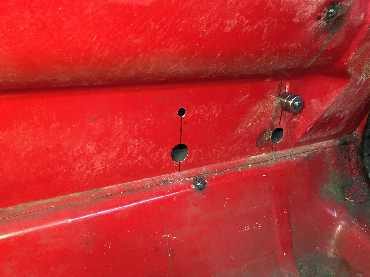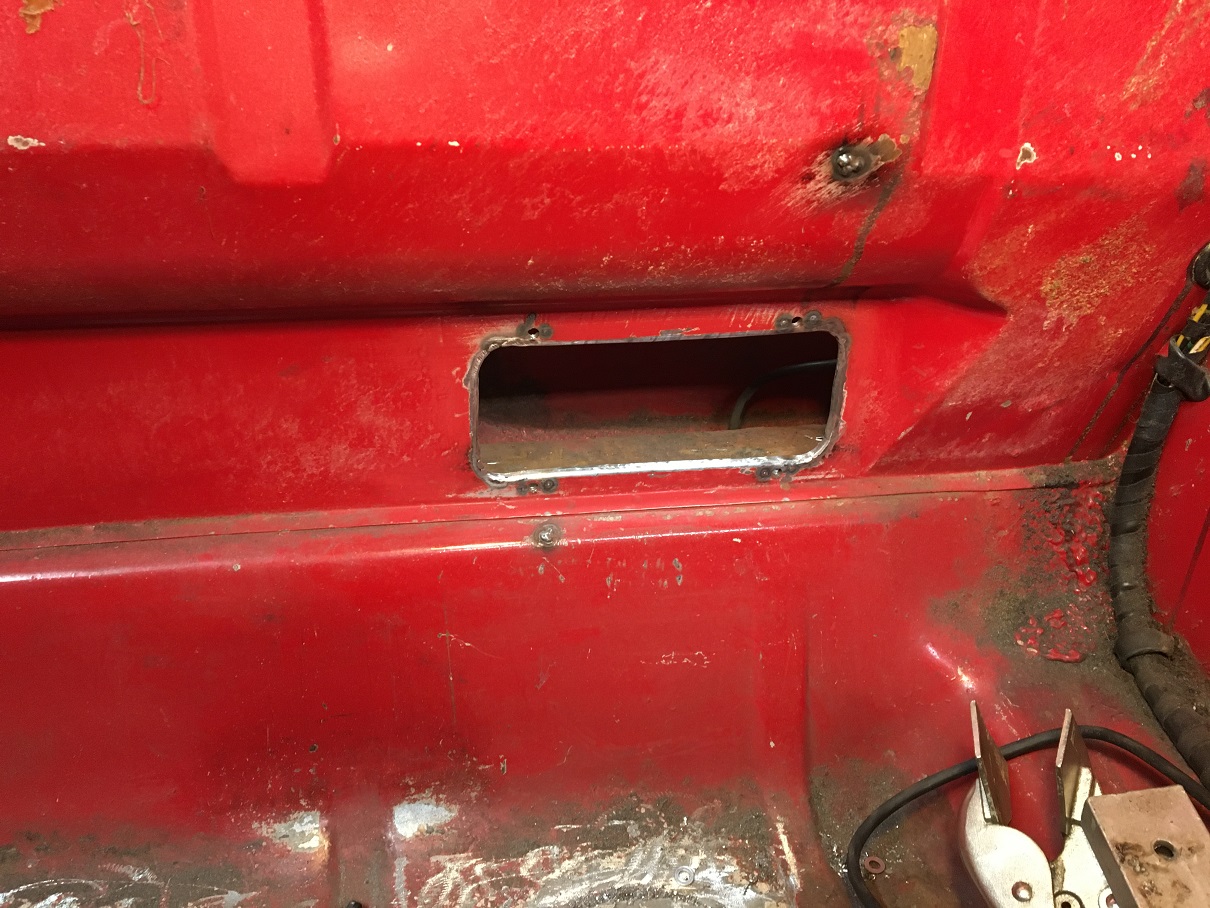 After removing the blower box and the wiper assembly, I have noticed this "custom" enlargement of an original hole about 5/8" dia. I notice there is one too at the same spot on the driver side.