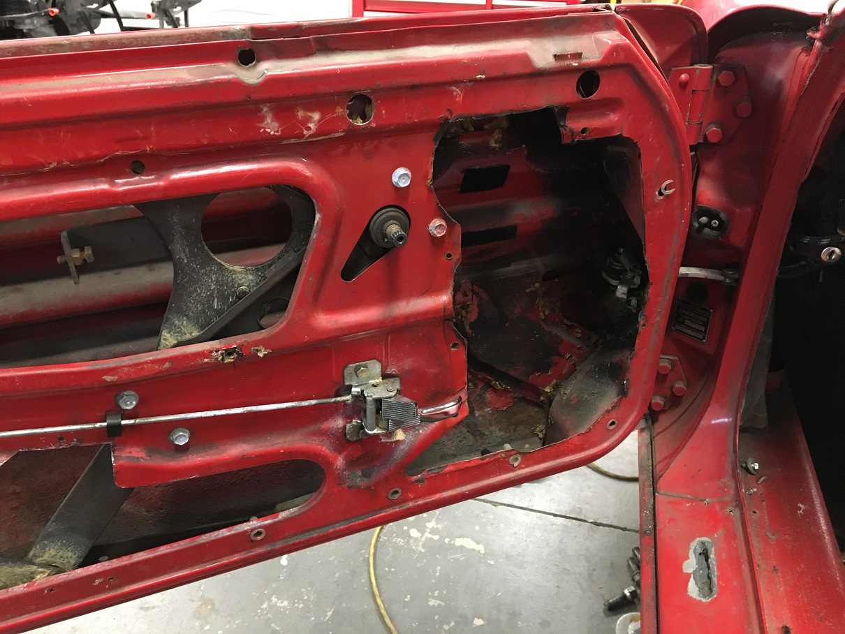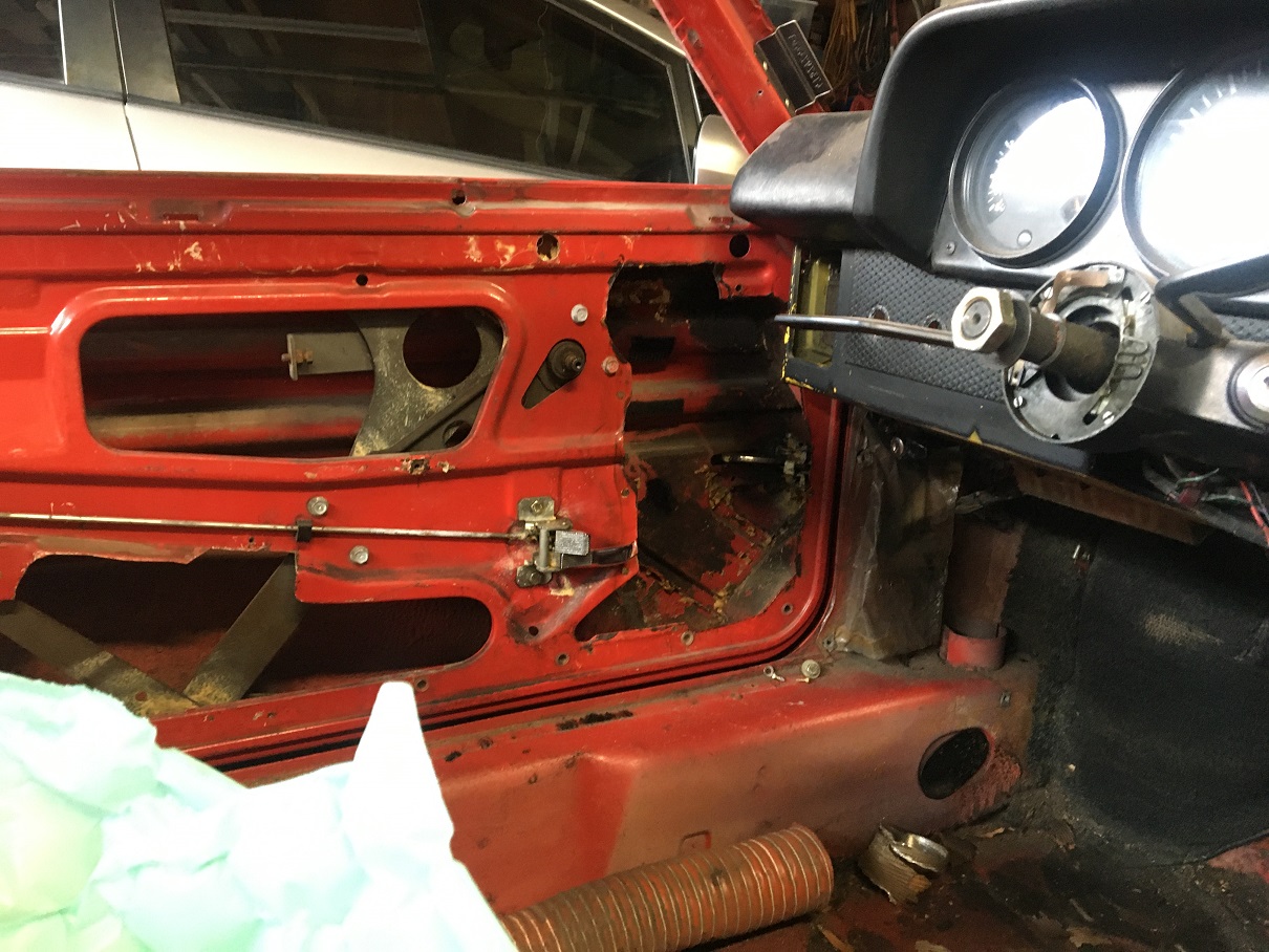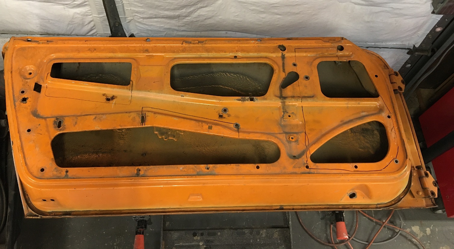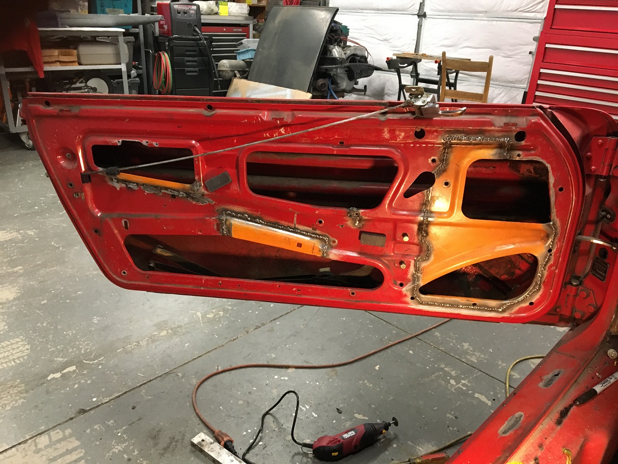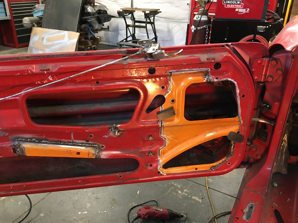 Believe it or not, my car upon previous ownership was equipped with an alarm system (ok), power lock (IMG:style_emoticons/default/unsure.gif) , and not one, or two, but three individual speakers in each door! (IMG:style_emoticons/default/screwy.gif) So below is the result of the bastardization done by one of these too many stereo shop that shouldn't be allowed working on ANY car... (IMG:style_emoticons/default/icon8.gif) I guess the logical thing to do would be looking for a good set of doors, but who said restoring a 914 was a logical thing... (IMG:style_emoticons/default/wacko.gif) Anyhow, for some reason, I preferred giving a new life to the car's original doors, than getting another set (don't try to find the logic (IMG:style_emoticons/default/rolleyes.gif) )... So in comes Bruce Stone @bdstone914 to the rescue! Bruce had a set of heavily damaged door on the outside but un-messed with on the inside (IMG:style_emoticons/default/smile.gif) . And so the patch work begins! (IMG:style_emoticons/default/smash.gif) (IMG:style_emoticons/default/welder.gif) Donner door: First step, repair the opening "created" for the power lock actuator. I cut that area out of the donner door while keeping half of the nearby holes as reference for positioning and prepping the car's door. Seems to be fitting well! Now nicely cut the door to fit the piece. Finally, weld in place. Now ready to tackle the large piece! (IMG:style_emoticons/default/smash.gif) Same concept, first cut a rough piece out of the donner door. Then trim down to what I wanted. Trace on the car's door and cut excess to make it clean, fit, once, twice, nineteen times... (IMG:style_emoticons/default/rolleyes.gif) Then weld in place. (IMG:style_emoticons/default/welder.gif) Rince and repeat for all the areas and you get this! A door with character (IMG:style_emoticons/default/biggrin.gif) Next, the other door... (IMG:style_emoticons/default/dry.gif) |