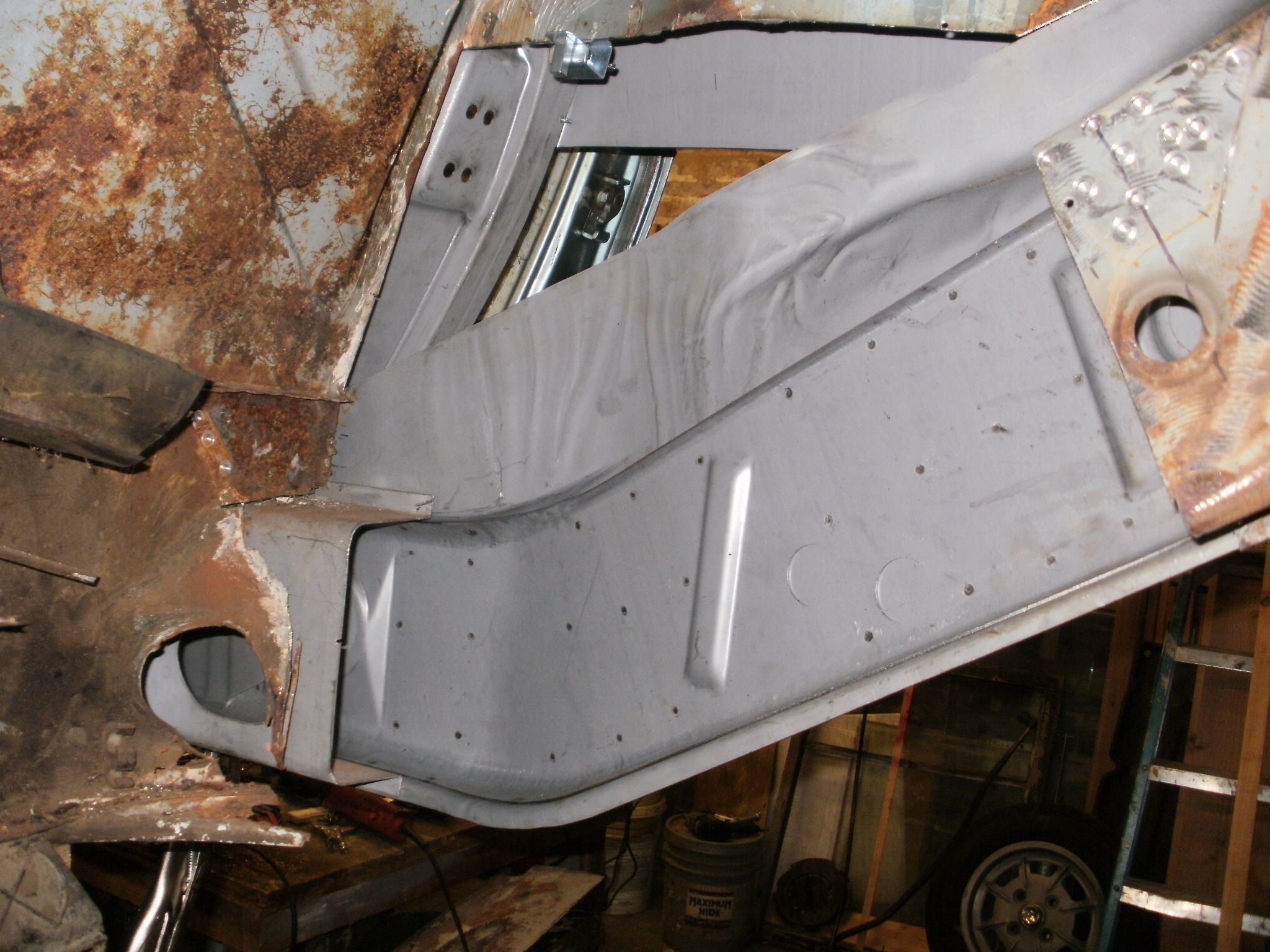 I'm overdue for an update. The driver's side long is ready to be buttoned up - the outer layers are assembled, fitted, painted, drilled for rosettes and ready to weld on. I have a heater tube on the way, as soon as it gets here, I will pop it in and button it up. I'll put some more pics up to get up-to-date... Honestly, I'm looking at a couple more years to get it on the road. Family, work, etc, you know the story. Dying to drive it, but having a blast with the metal work.