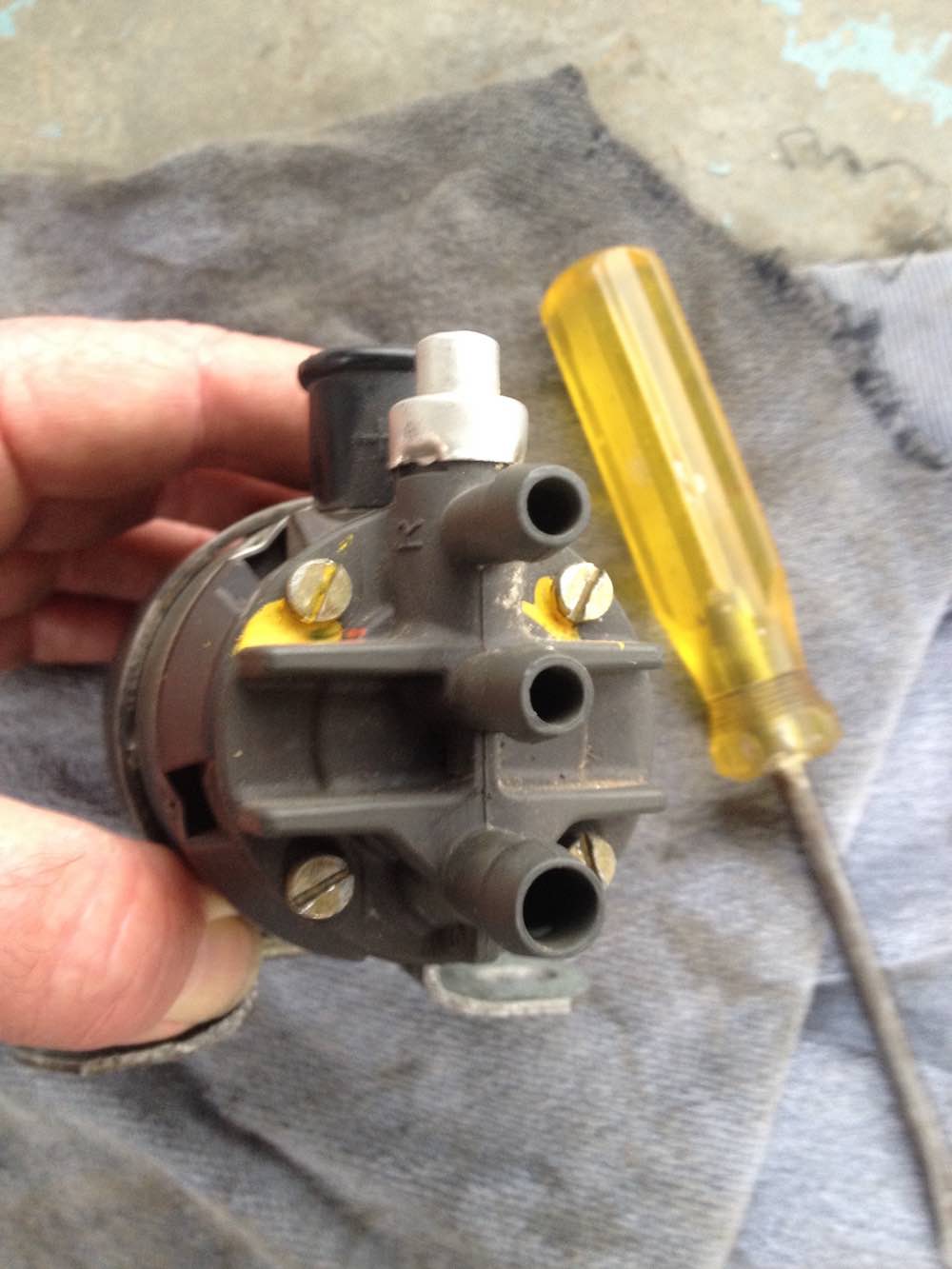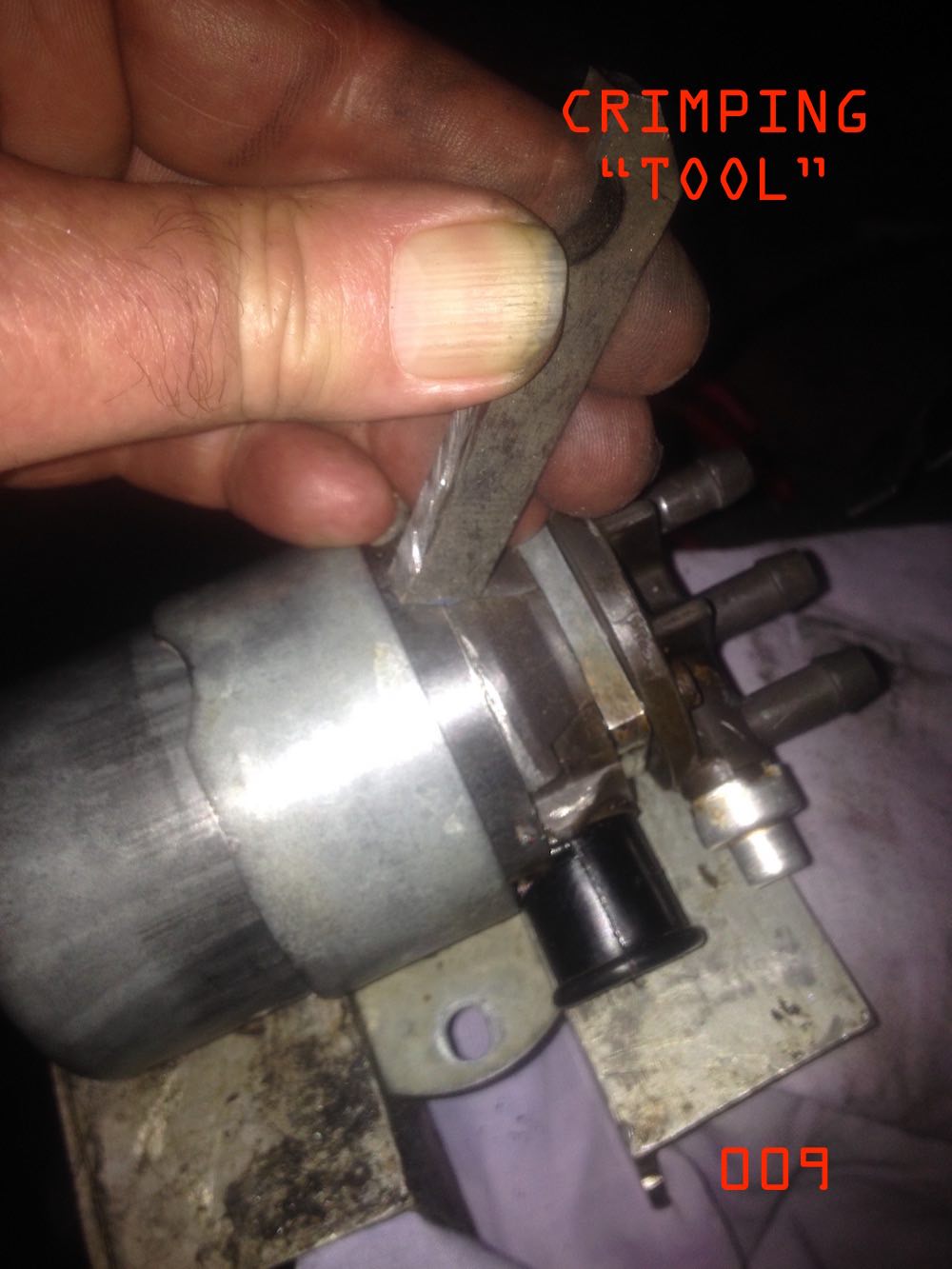 re-crimping the pump casing to the port/pump base. another one of those moments thinking too much about how to do it. did not want to use a screwdriver and hammer as it would be too sharp? searched around the workshop for a piece of scrap metal. found a scrap of steel bar strap - was the correct width to fit the crimping recesses machined into the port/pump base. i fitted the original pump mounting bracket to the pump casing. clamped the feet of the pump mounting bracket into the vice. i could use a screwdriver to loosen and tighten the pump bracket - and spin the pump casing around to crimp each point in the pump casing. used a hammer and steel bar to gently work the crimping back in again. finished off the last bit of the crimping with a sturdy screw driver and hammer. pump all back together and ready to test. we used kerosine to test the pump. has similar if not identical viscosity to petrol fuel. has none of the harmful additives that will foul a pump if you leave it on the shelf after testing. the kerosine has similar lubricating properties to fuel - so the pump will not chew up bushings, shims etc or run hot during testing. with these pumps the fuel is providing both cooling and lubrication during operation. on the first test the pump ran. spun up straight away. but no suction and nothing was coming out of the delivery port. after a bit more coaxing and attempts to prime it began to blow fuel out of the pressure relief port. achieved weak suction feed. i stared at the three port assembly at the top of the pump and thought to myself. you have been real optimistic thinking that bit does not need to be disassembled and cleaned out. packed up the tools. job for another day. |