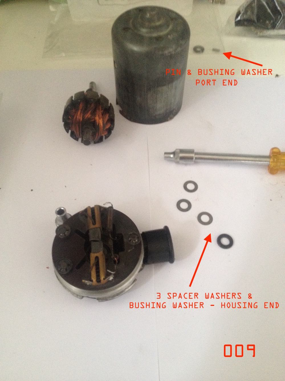 STEP 3 - REASSEMBLING THE PORT HOUSING, MOTOR SHAFT & ARMATURE, OUTER PUMP HOUSING.