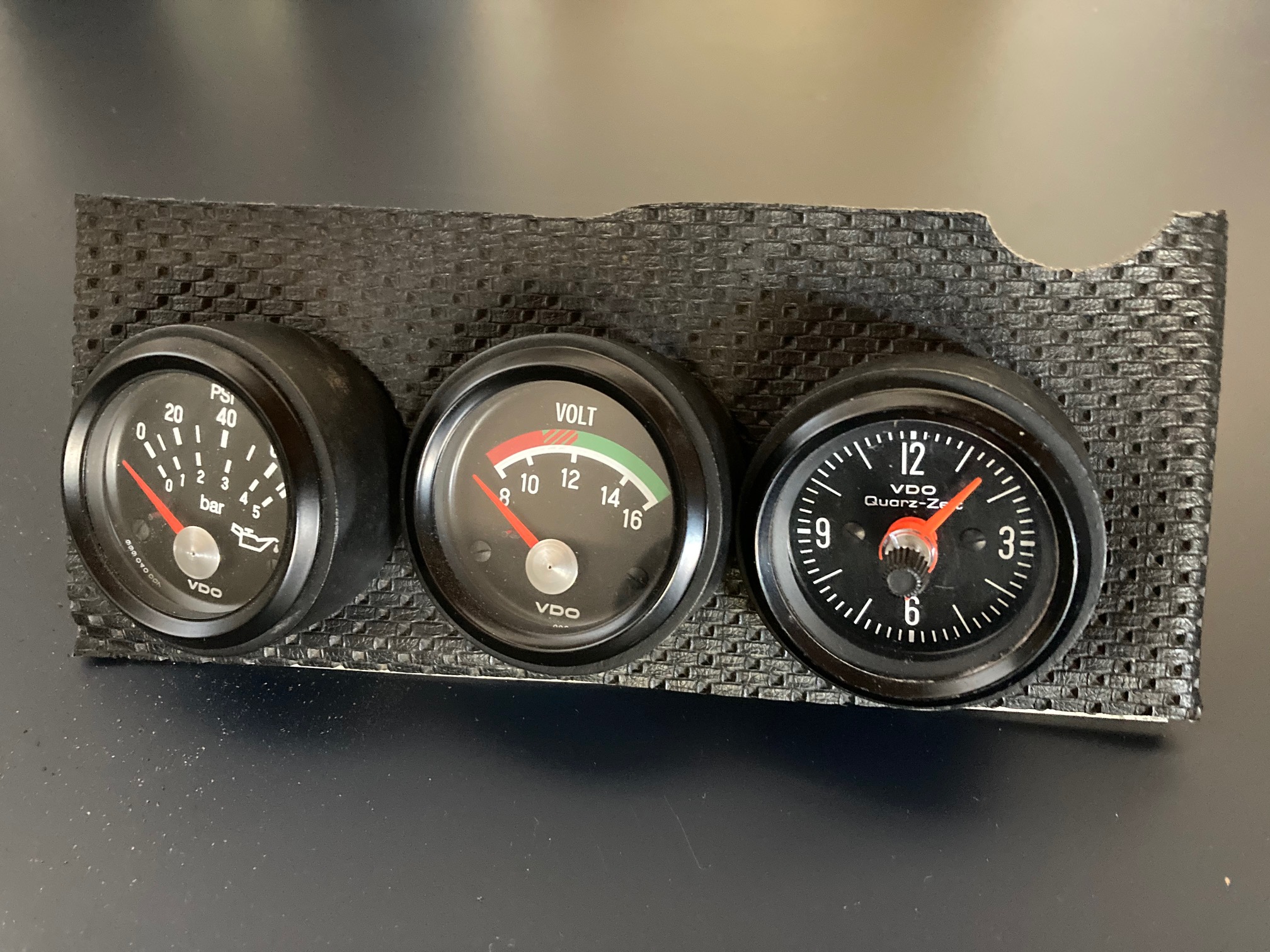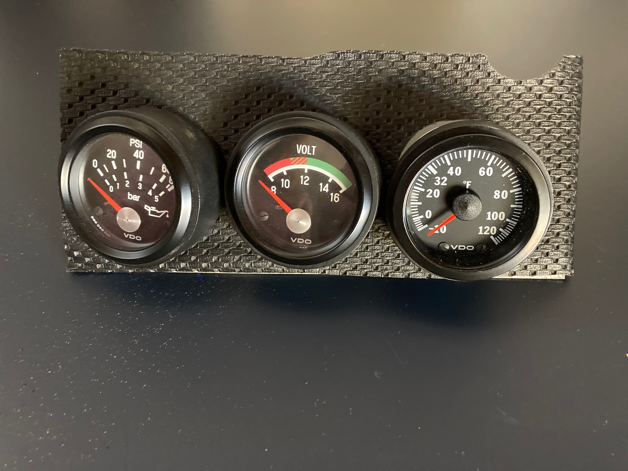 I replaced my head unit with a smart phone about a decade ago and never looked back, replacing it with three gauges canted toward the driver. With no need for a clock, and no desire to install the amp and crossovers behind/under the dash only to have to remove them, I finally decided to order an outside temperature gauge—and will be sending it to North Hollywood Speedometer for a silver dot and (hopefully) a vintage bezel and glass. Attached thumbnail(s) |
