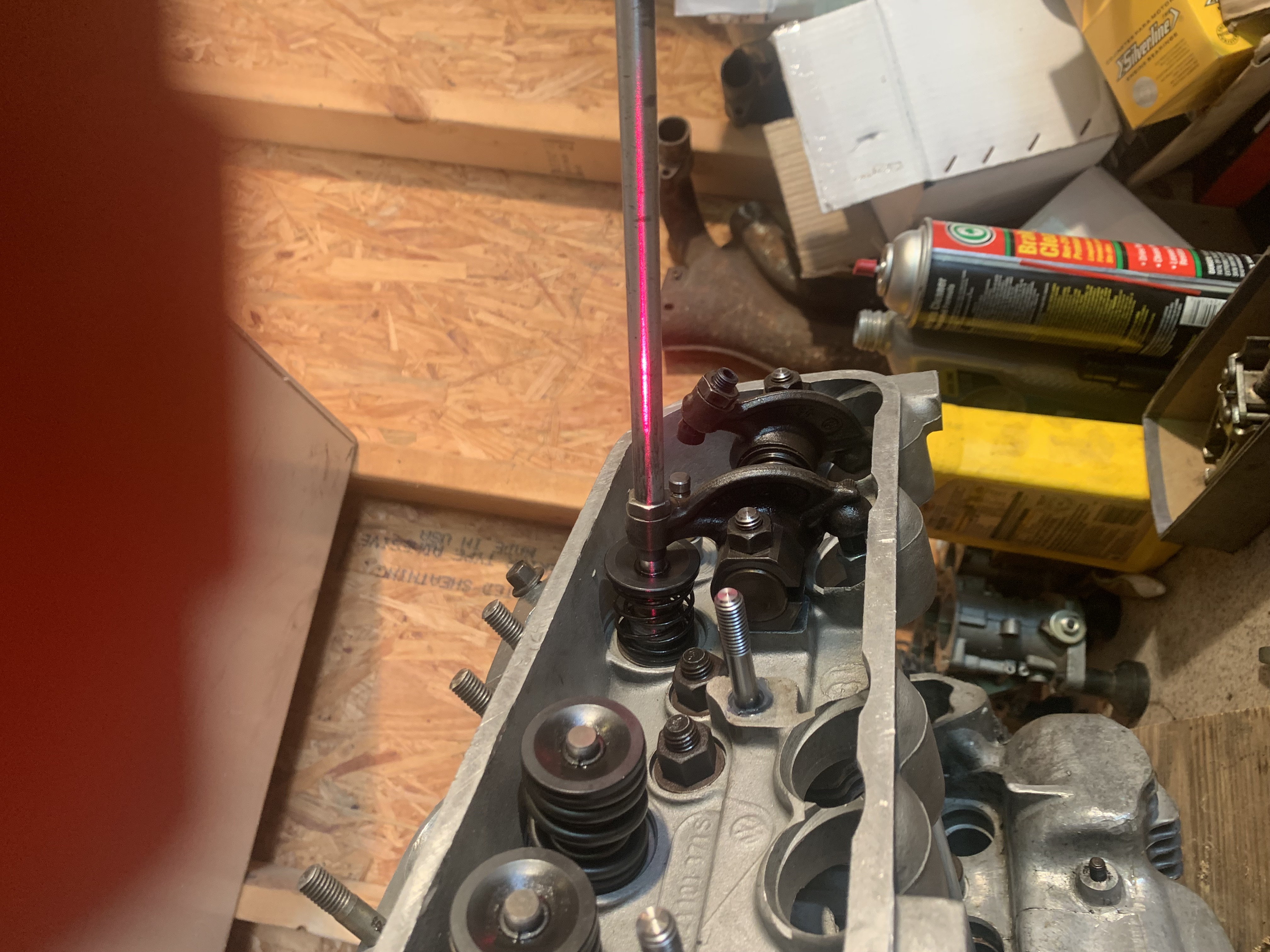 Push rod length 27.27 cm this turns out to be the wrong way to do this... Started over and things are looking fine without the shims and the pushrods are close to the stock length... FWIW: The aluminum rod to help align the adjuster is from a shot gun cleaning kit ;-) |