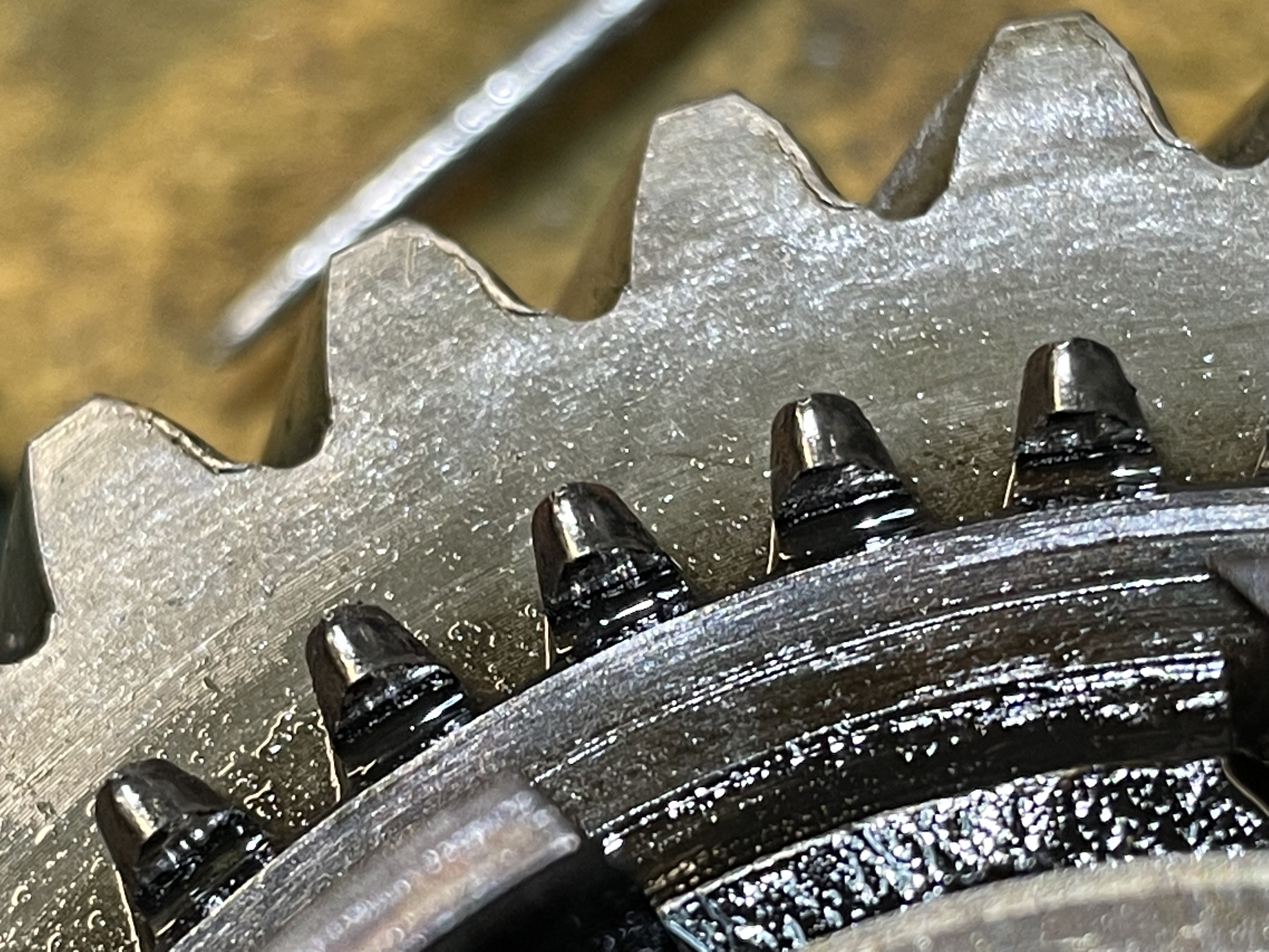 To press the dog tooth gear on to the first gear, I placed the gear in the freezer and heated the dog gear to about 400 with a heat gun...