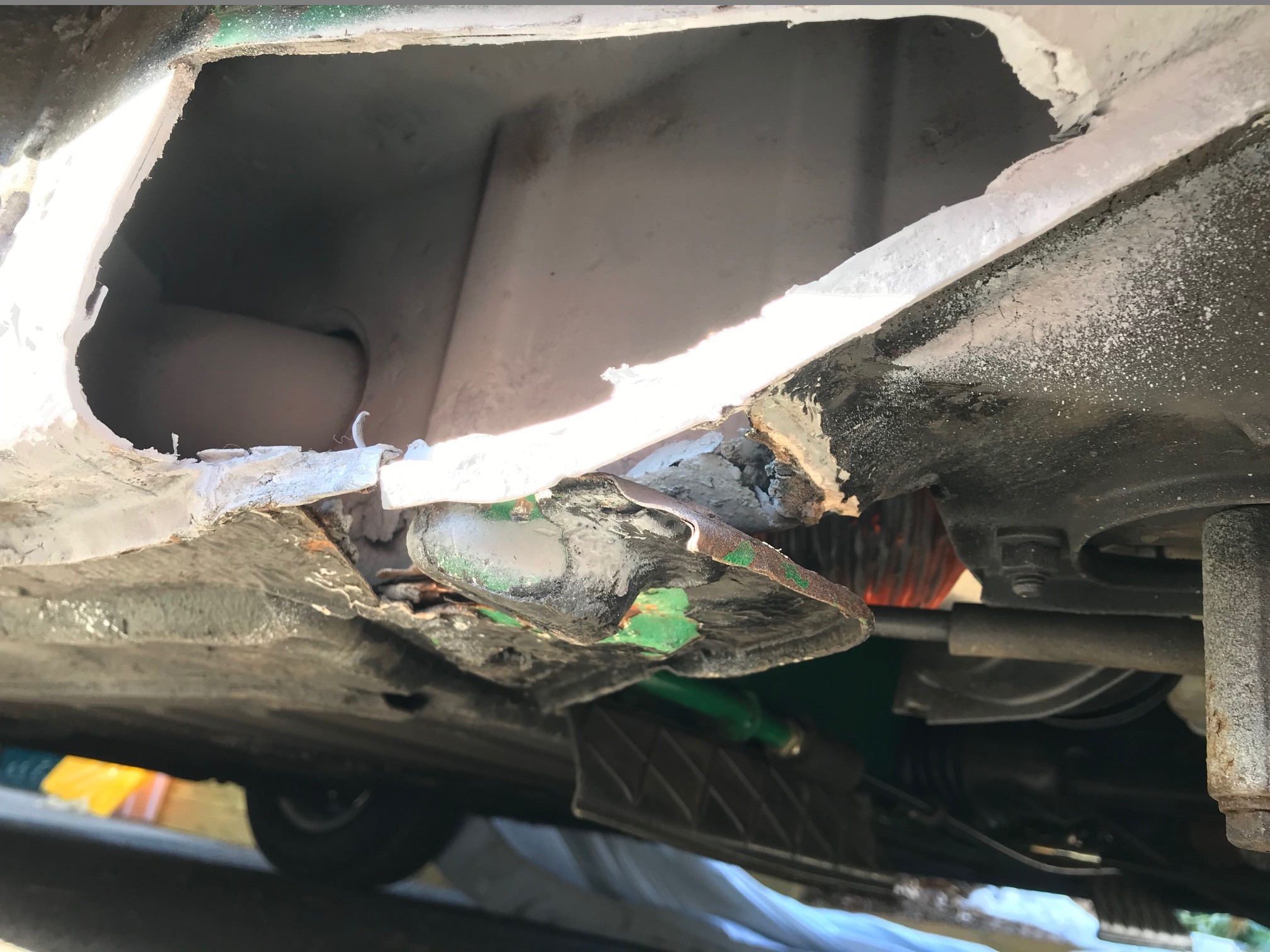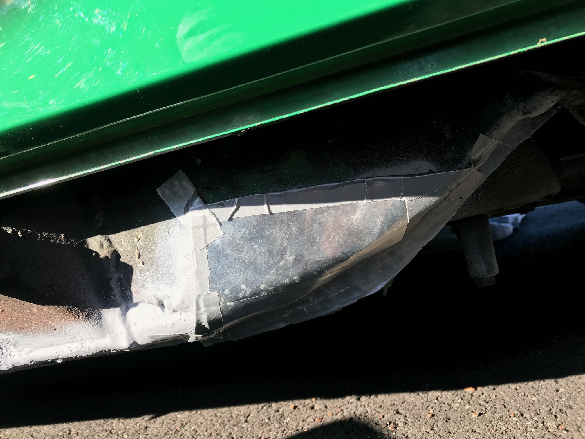 Two questions - I'm embarking on a similar adventure though a) on a WAY much smaller scale and b) without the facility, equipment or skill to do what you're doing. I've made a template of a patch for a spot at the back of the left side clamshell (see photos). 1. It looks like the metal there is 10 guage, maybe 12 (?). Can you confirm? The shop to do the work will custom fabricate the piece. Also, presume cold-rolled sheet steel? I'm thinking TIG welding but would MIG be sufficient (and quicker e.g. cheaper)? 2. The area just forward of the jack triangle might also need a bit of flat sheet, like a corner of the floor pan from your photos? Thanks ever so much! The cancer cut out (very localized - from "the long ago time" of daily driving grit and salt accumulation behind the rocker panel): The template mockup: The template in place: |