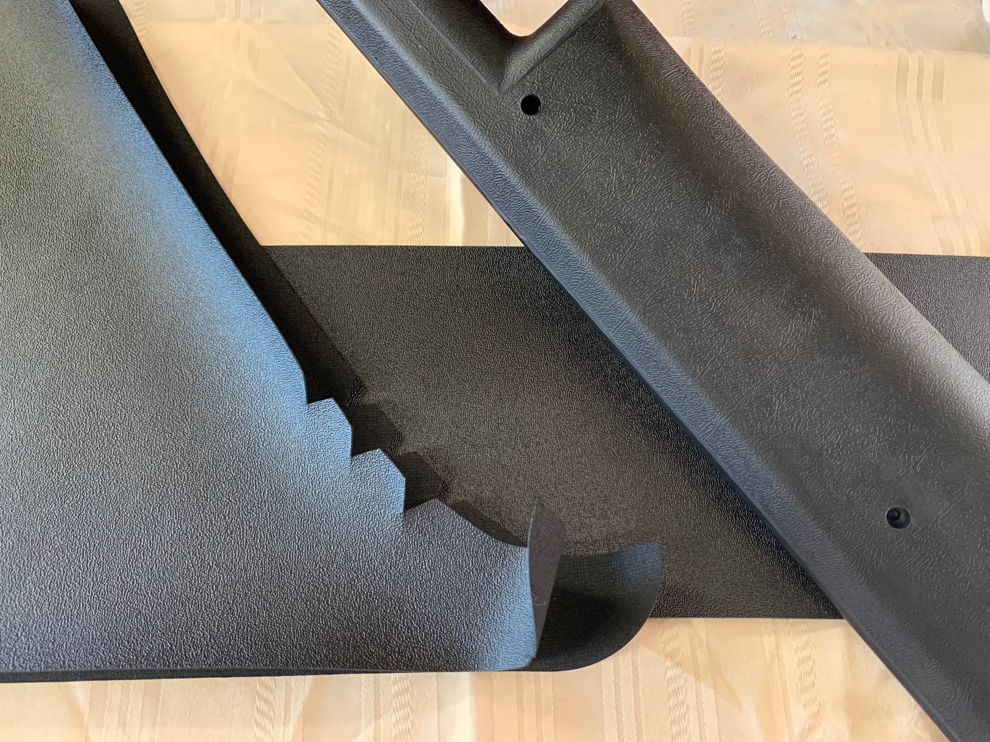 FYI - I was able to install mine after grinding out the latch openings to provide clearance for the stock latch covers (described in the other roll bar thread). Installing the pad was a bit of a challenge because the shrinkage was enough that the screw holes didn't align perfectly. After securing one end of the roll bar, I used a sturdy straight pick for leverage to stretch the pad to line up adjacent screw holes. I had to use 1-1/4" long screws (sourced from the hardware store) on some of the holes to be able to angle them through the pad holes and catch the hole on the roll bar. Then I could tighten the screw to pull and stretch the roll pad into alignment. There were times I didn't think it was going to work, but it did.