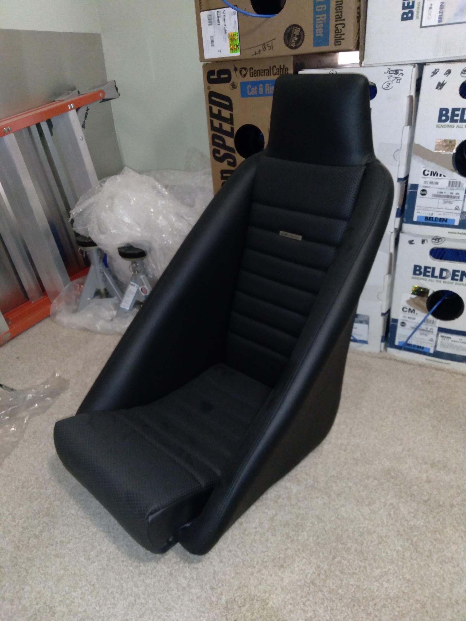 https://www.evasivemotorsports.com/store/pr...-leather-black/ I got a set and they seam great. I'm 5'10'' and 40'' waist. It's a good fit for me and still plenty of room for head protection if taller. You can get brackets to mount the 914 lower sliders on these too. I believe there's a few members using these seats. Only issue that I see is the back pad will need to be removed. Depending on cost, I was looking at maybe having 914rubber make a carbon fiber version of their plastic backing. I'm waiting for PMS to send me my seat brackets to test fit it all... Yeah I know Clay , no pedals and missing a few other parts.. (IMG:style_emoticons/default/poke.gif) (IMG:style_emoticons/default/lol-2.gif) |