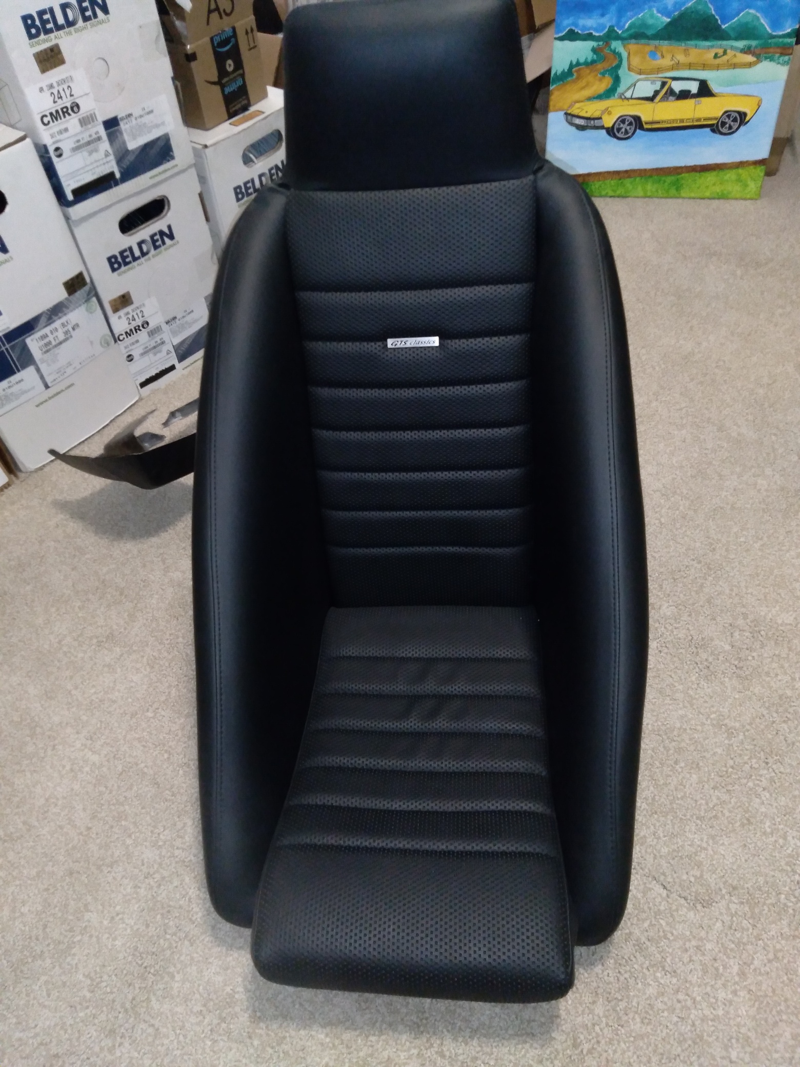 I have a pair of GTS Seats that might work for you. They will probably address your side bolster issues, but likely NOT your headrest issue, as the headrests on these seats are actually probably even more shallow than stock, and not any taller. The seats are loosely based on GT racing seats and are made from 914 cores. If you have any future business in the Atlanta area, I would be glad to meet up and you could take a test fit if desired. They currently have no rails or sliders, so it still wouldn't be as good as a test actually mounted in the 914. One seat does have a very small tear/cut in the back that I assume happened during shipping. Let me know if you'd be interested in taking a look if your schedule/ travel plans permit. I have included several pics. |