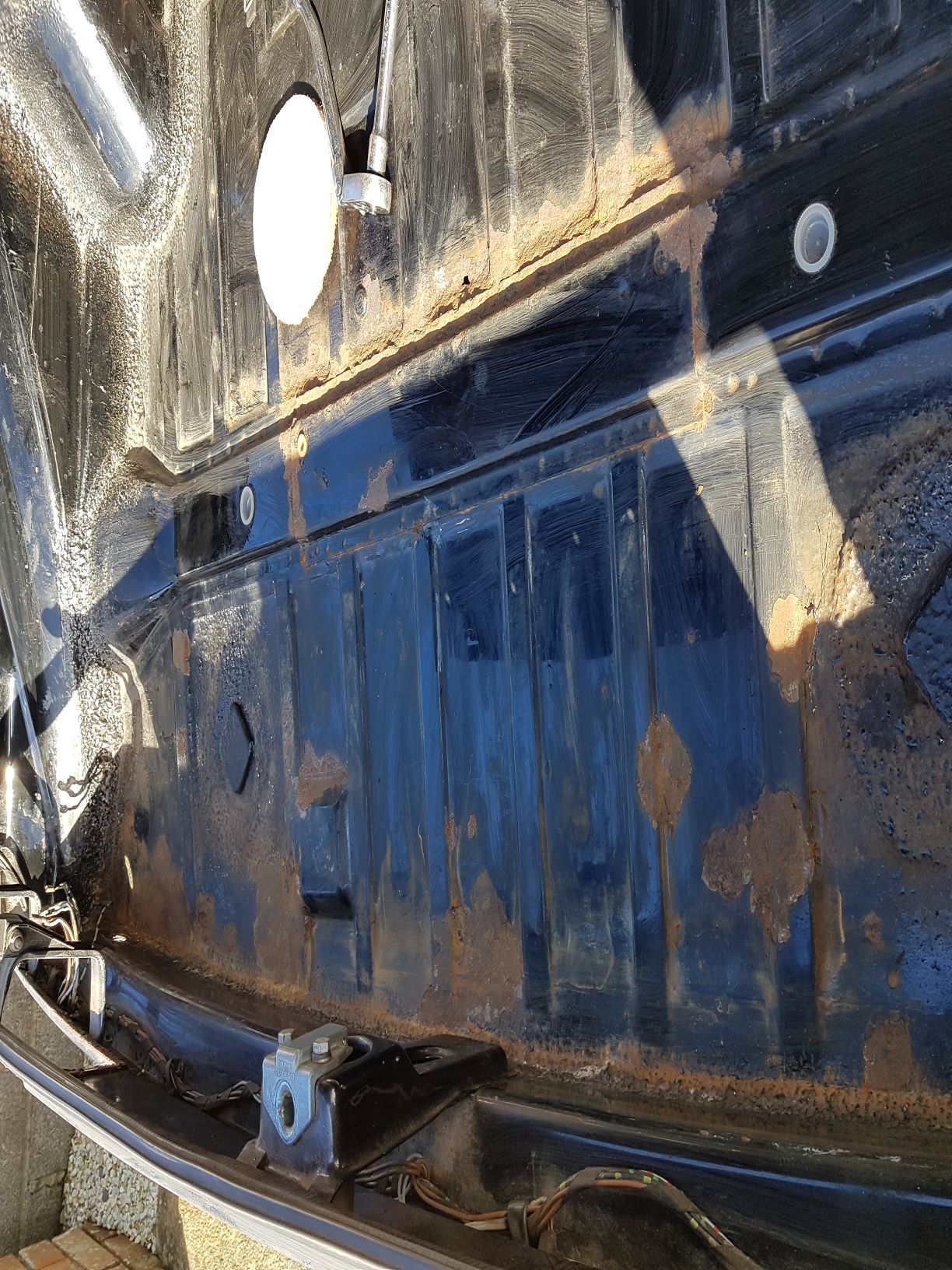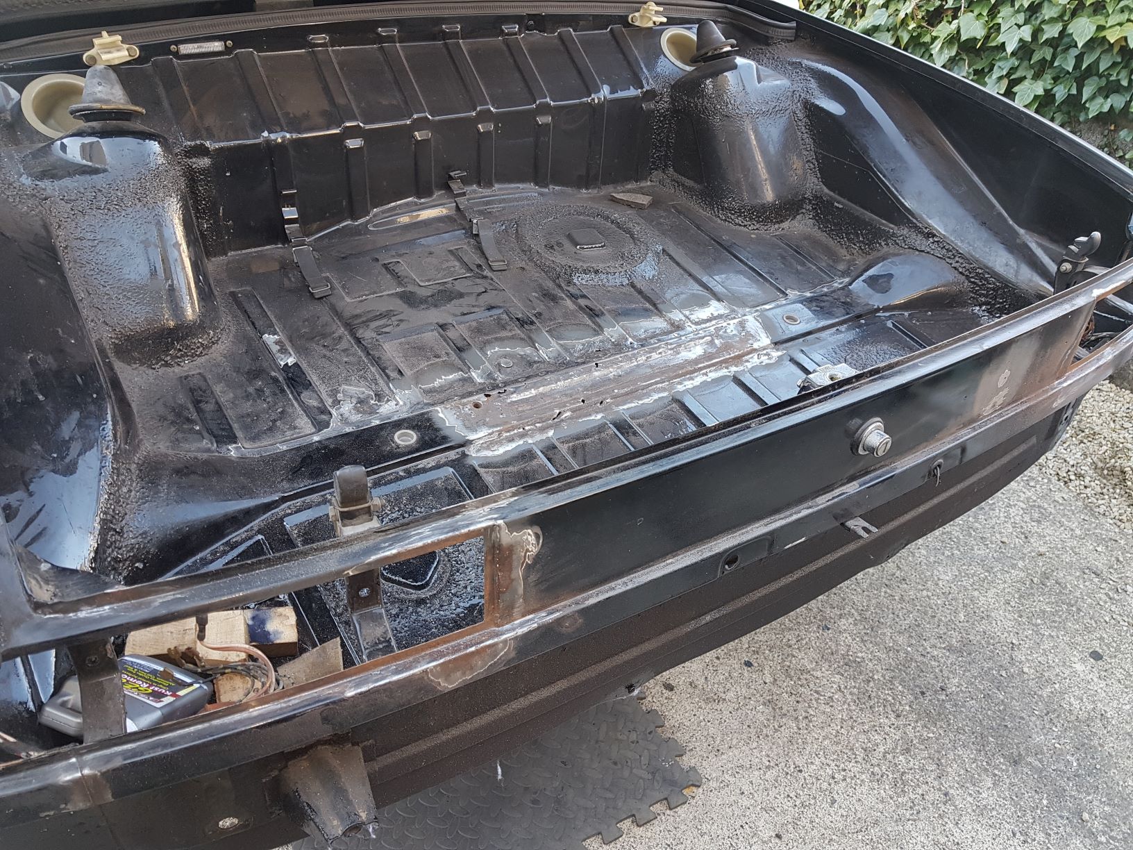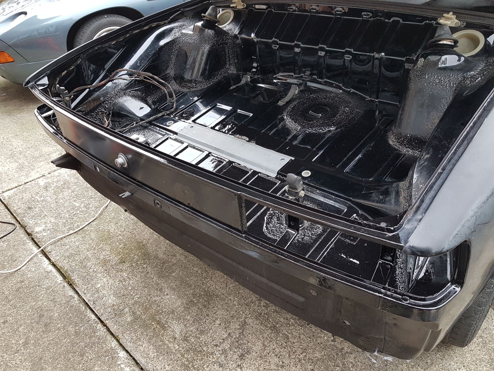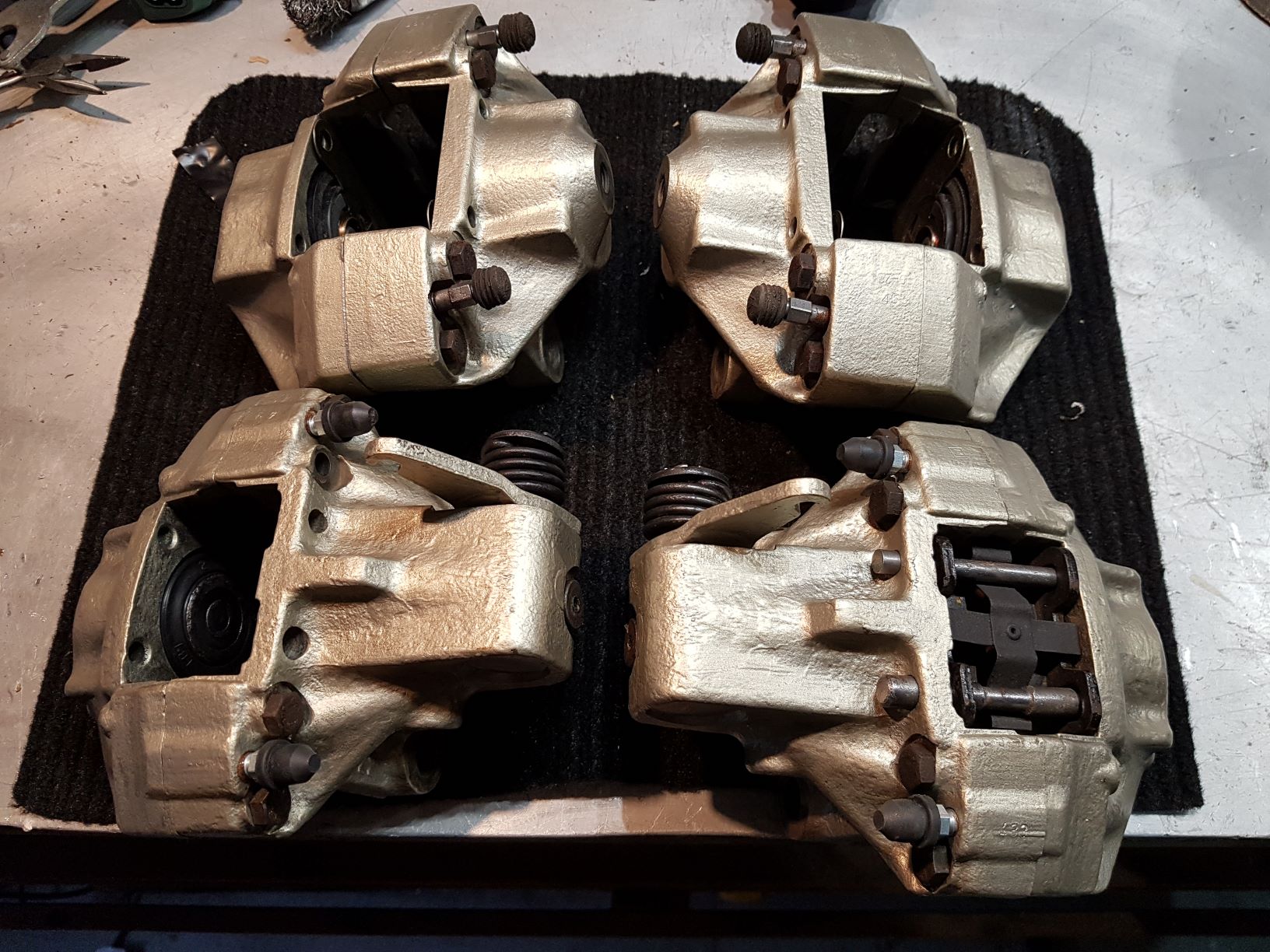 chipping away... pulled the front calipers for teardown, already have the rears apart and cleaned, getting some quotes to have them all zinc re-plated. Master cylinder out now as well, just getting new one. Best was finishing off the trunk surface rust cleaning up with por-15, just the need to weld the new reinforcement plate and a couple of pin holds just above it - i'm going to try to weld them up but it doesn't work i'll put some new sheet metal then prep for final paint. Getting all the other repair panels roughed up before i start the welding phase !