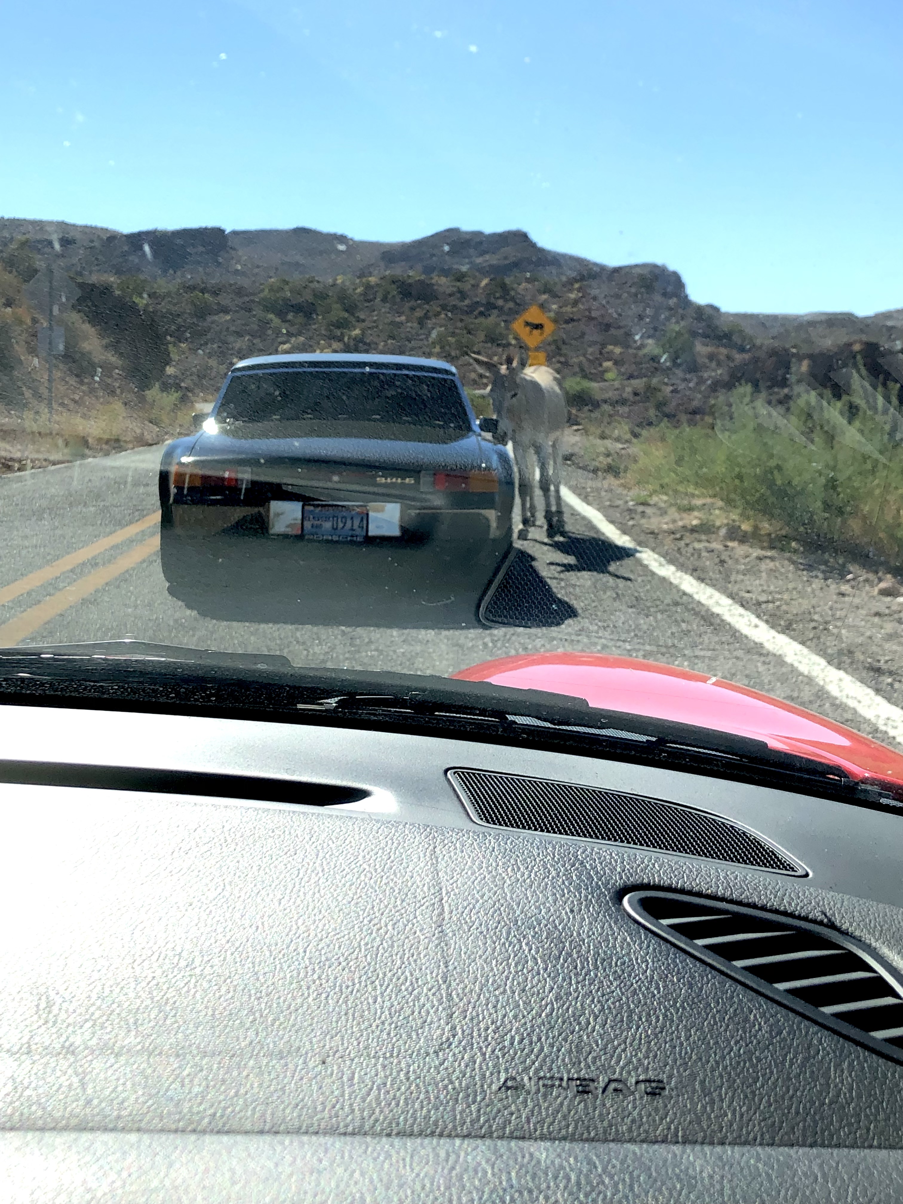 I want to thank John for this great trip and everyone that was there, you made it very special to me. I think that my buddie mark with his water-cooled Targa 4 AWD could keep up with Johns 3.0 914-6 in 115-degree heat. These where the most challenging twisty I have ever been on and the guys in the red Targa ( Me and Mark for the last 50 years) where raised on Mulholland for our jamming. Johns car was almost mounted by a Donkey as we saw the donkey sign. Incredible handling with these cars. Our car had no idea what we were going to experience and I am glade that Mark S had lots of hours with a teacher at Porsche experience in his car. I have video of the jamming but it is too big to get on here for me Bob Burton on board as Bob B |