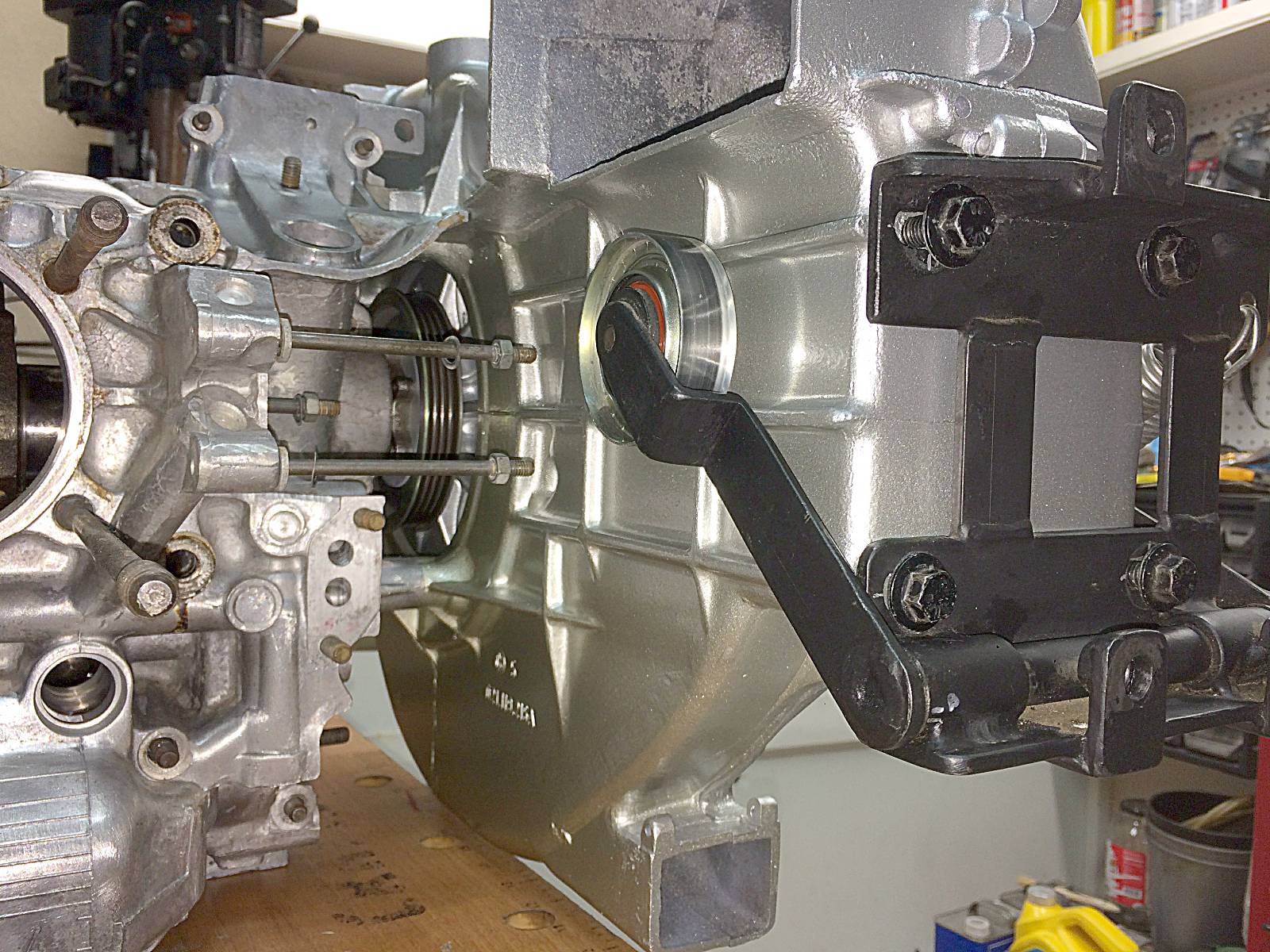 Run the hoses alongside the passenger side long behind the valance. If have pic's detailing the routing of the freon lines. Here is a neat trick; drill a 1/2" hole directly through the middle of the front passenger "donut" (where you place the hydraulic jack)and route your condensate drain through it. Have it terminate 1/2" below the metal "donut" so it won't contribute to rusting out and then it is hidden from site and won't interfere with any jack you might need to use. (IMG:style_emoticons/default/beerchug.gif) Start at post #593. http://www.914world.com/bbs2/index.php?s=&...t&p=2219962 Here's something I came up with to mount a compressor on a type 4 motor in a VW Bus, using a serpentine belt. It has been bulletproof for about 6 summers now. Attached thumbnail(s) |