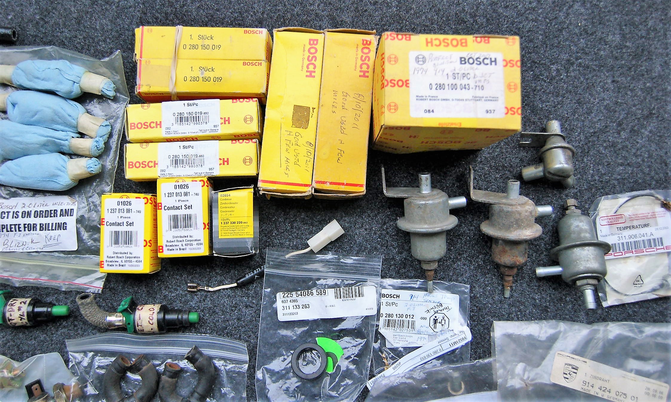 I am getting ready to take my 914 out of storage & having my new 123-Electronic distributor installed in a few weeks. After that's completed I'll get rid of excess F.I. parts no longer needed. Some of this stash was purchased 15++ years ago so I need to get a general idea how to price in today's market?? Need fair value suggestions on good 914 2.0 engine F.I. stuff?? Not ready to sell yet just need market info. Tom (IMG:style_emoticons/default/unsure.gif) Attached thumbnail(s) |