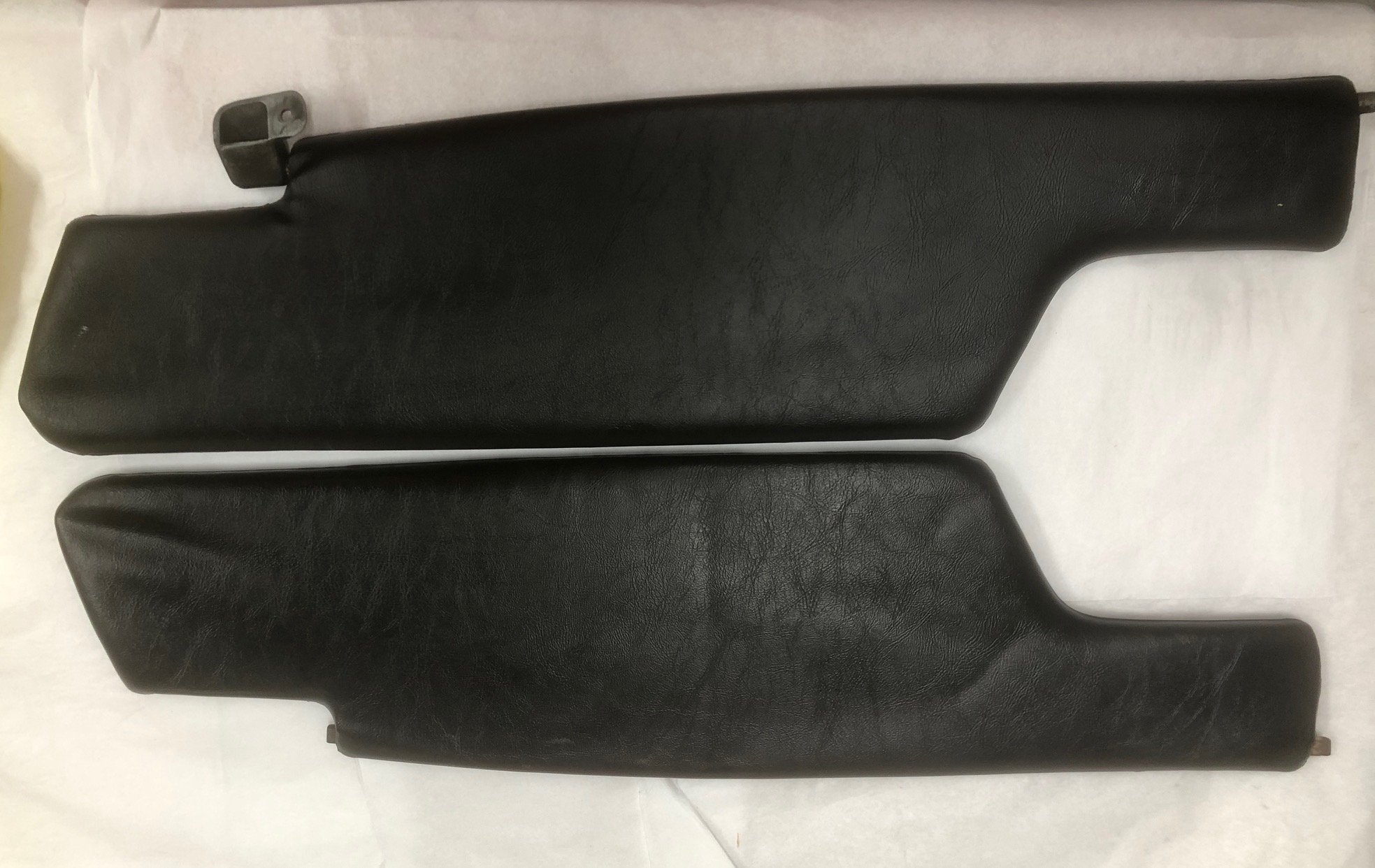I still need these. I am looking for undamaged originals to match the original vinyl material. I have a pair from 914Rubber and have looked at AA but neither really matches exactly. So, If anyone has the original that are not destroyed internally please let me know. Or remanufactured that are same are original. The reason I am so picky is that the sun visors need to match the dash or else it clashes terrribly I am not interested in buying damaged visors that are floppy, torn or missing the map packet or flap and mirror on the passenger side Thanks |