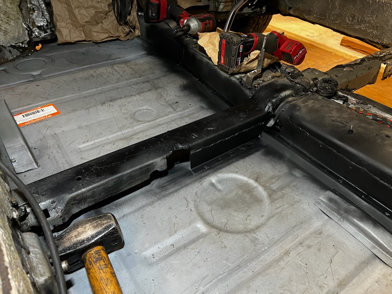 Still a few hoops to jump through, but about "half done" with the main body. Surprisingly the passenger side is in better shape - which is odd. So that should go faster. The bottom 2" of most of the car is soft and requires remedy. We agreed to save both of us time/money, not to aim for visual perfection, but aim for a safe and solid revival. I would fabricate all the simple parts - like the tunnel sides - instead of sourcing another whole tunnel. Additionally, not worry about blending or finishing any welds that it will be covered in carpet. The guts of the tunnel were also in very bad shape. Which resulted in my sourcing of metric tubes in various sizes, bending and installing, that was a doozy. The car will see the road again. |
